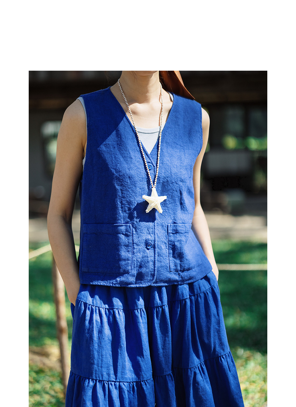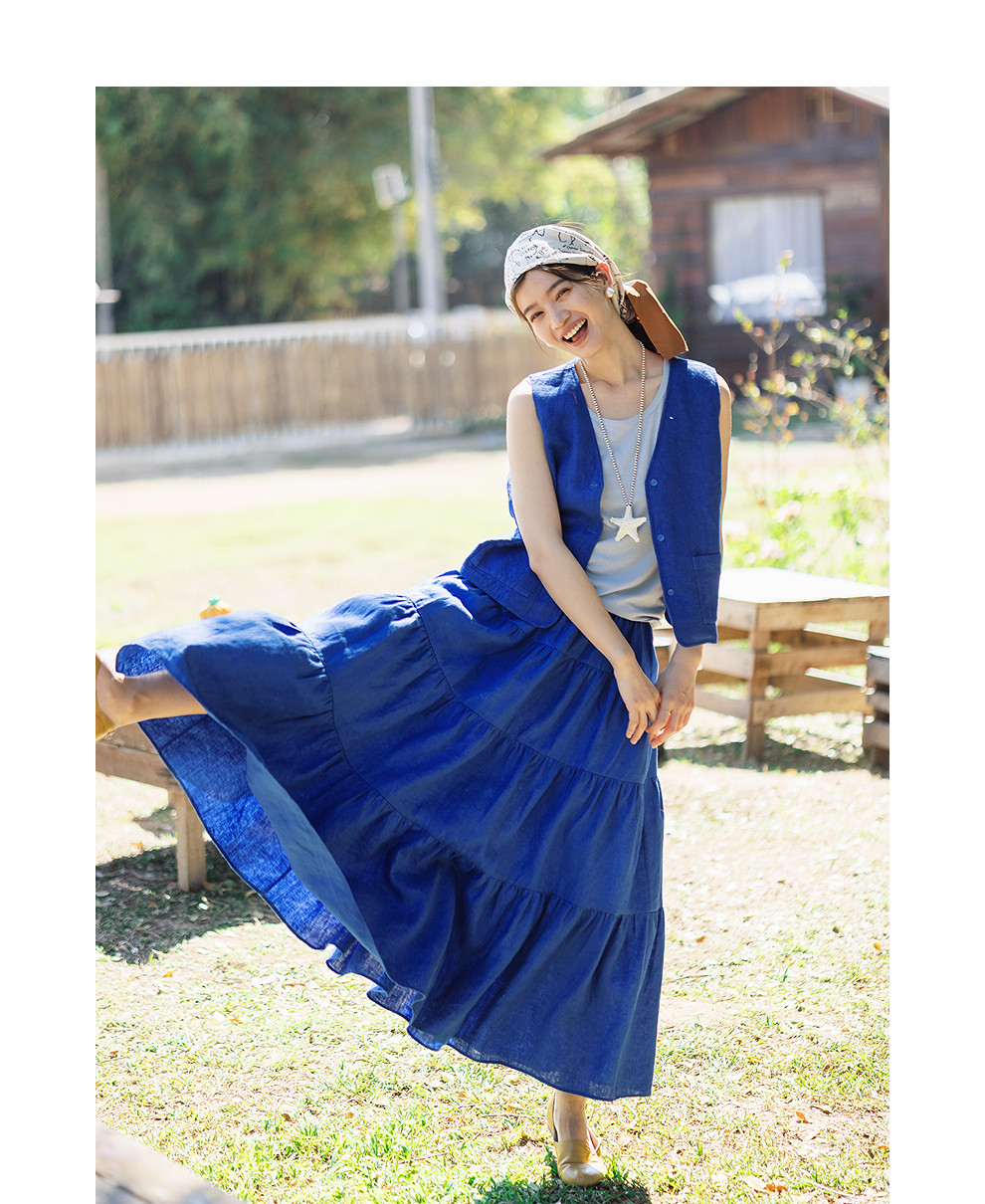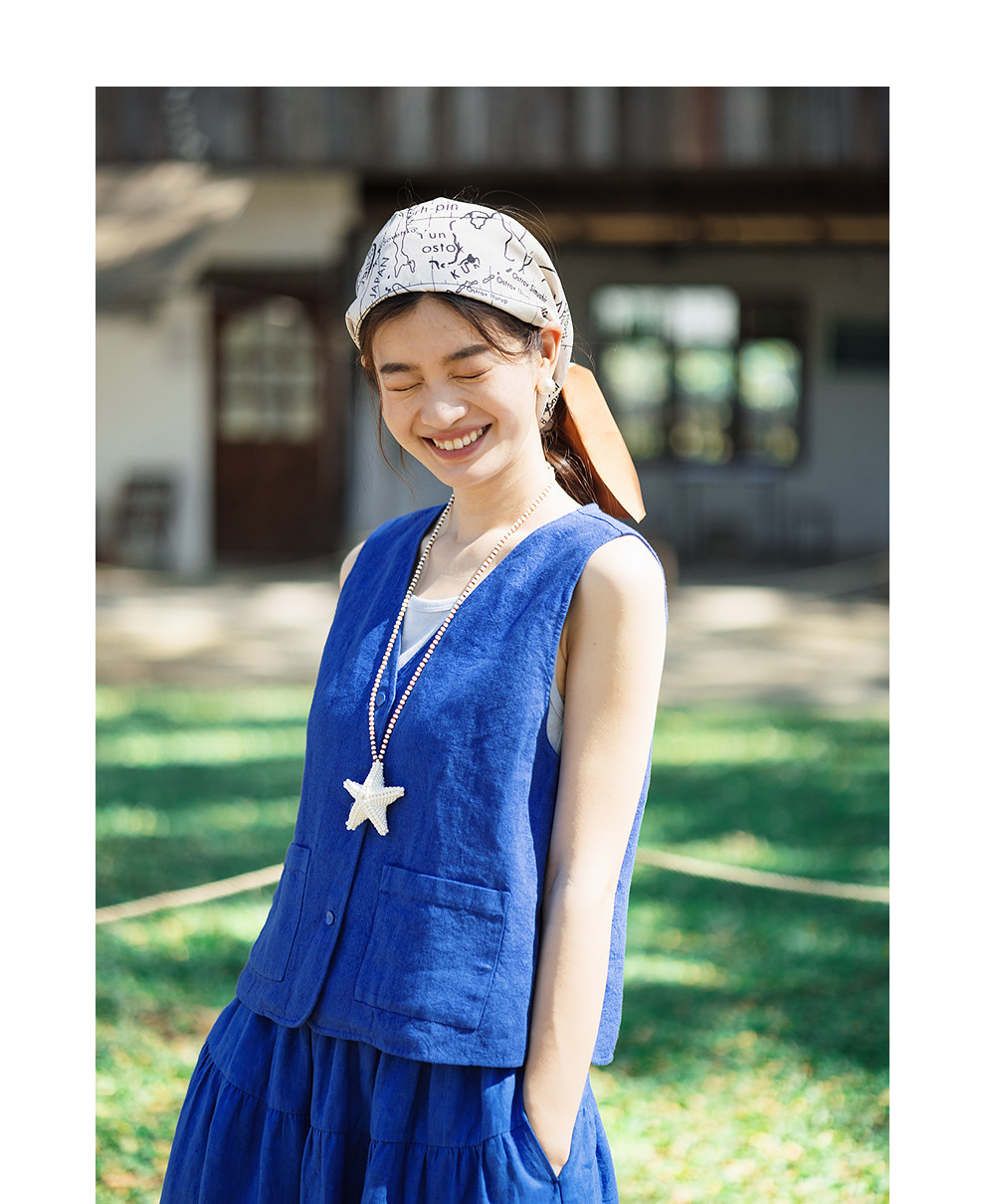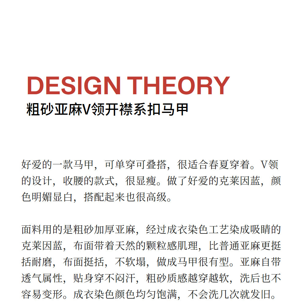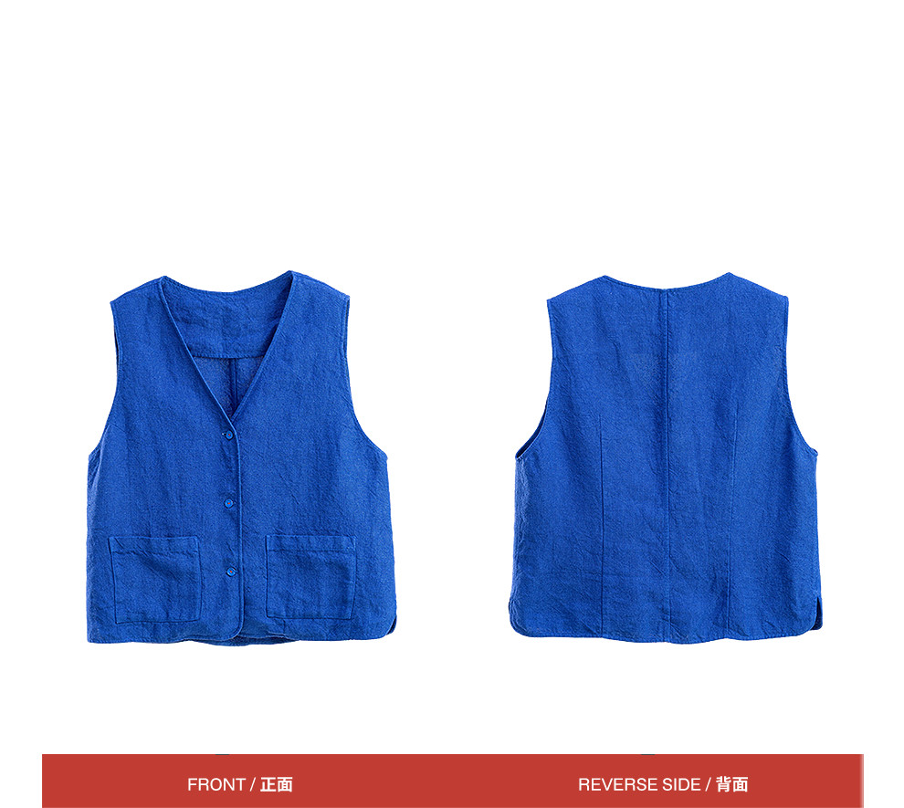 绽放126朵/粗砂亚麻V领开襟系扣马甲女新款外搭叠穿无袖上衣外套