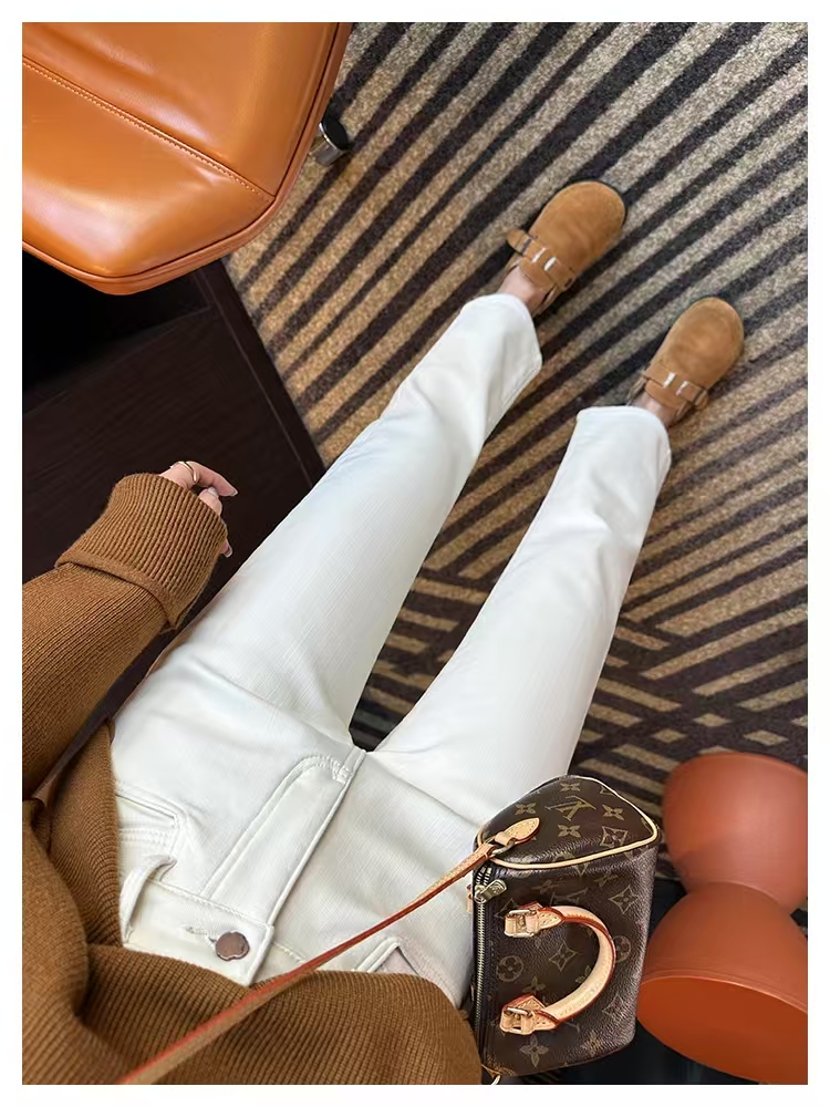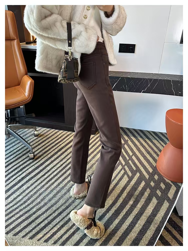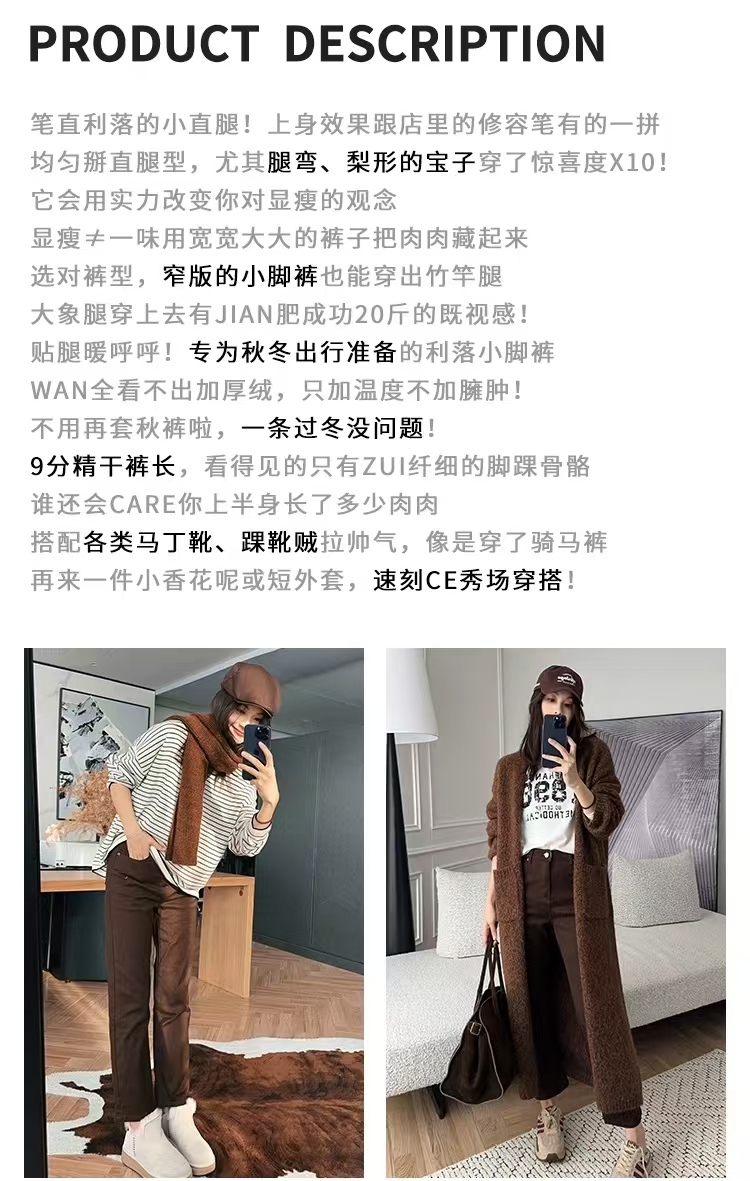 是一条万能加绒裤,可以搭配各种鞋子,长短太友好~土耳其公认好穿,四面弹98高棉,新出了美拉德色,火出圈啦~超好看咖色,真的就是很绝呀~正常长短窄版直筒版型,可以很好隐藏肉肉上身笔直双腿即视感。