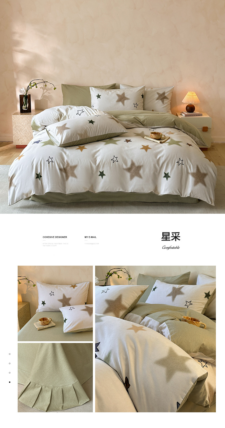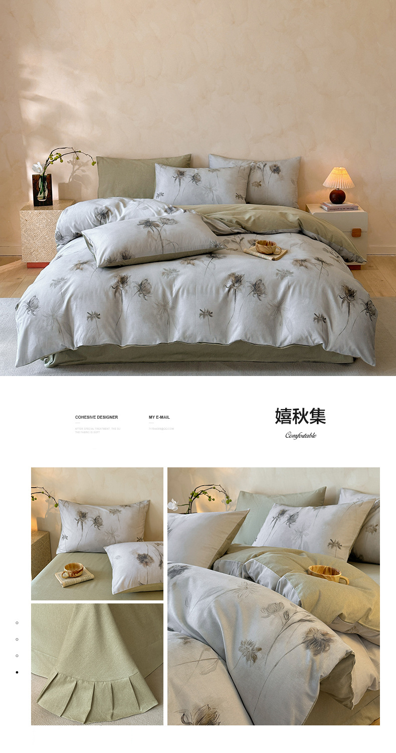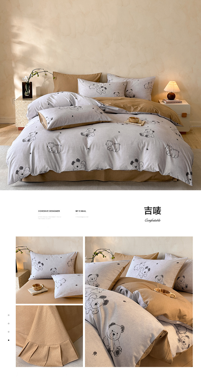 全棉磨毛~秋冬高级感主卧室纯棉四件套 轻磨毛美式田园 可爱卡通 水墨国风多种风格 贴肤裸睡级温暖舒适