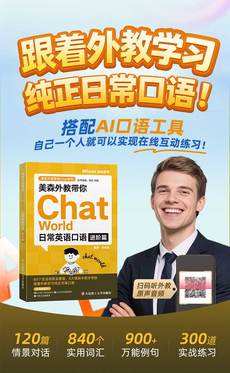 每个场景都配有即时练习,学完即练,及时巩固。所有音频均由专业外教录制,精准呈现纯正的语音语调。你可以扫码随时听、随时跟读,在模仿中练就地道的发音。