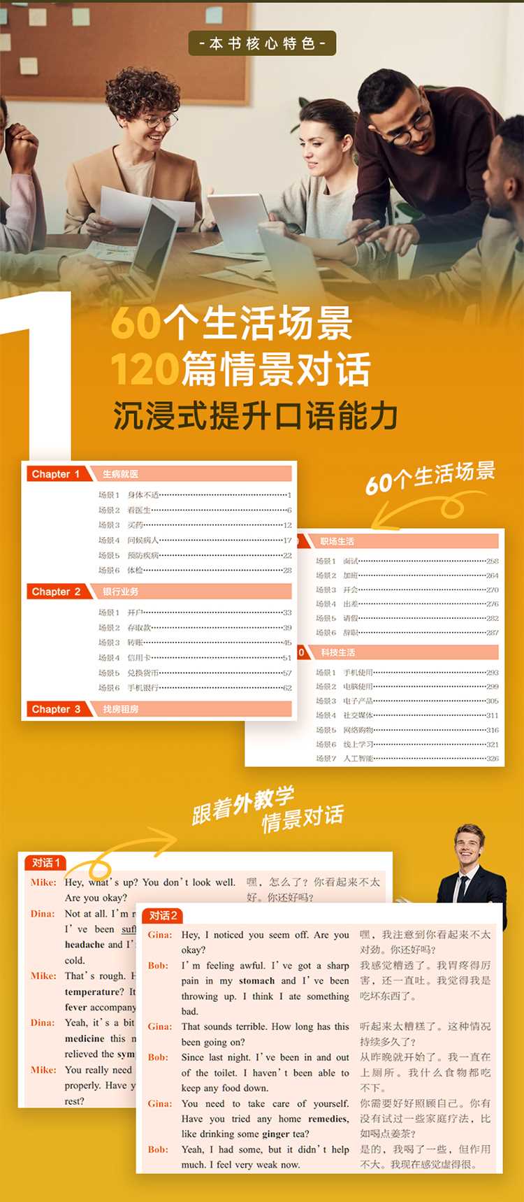 伸2篇情景对话,全书共120篇。对话贴合实际,还原真实沟通细节,读者可通