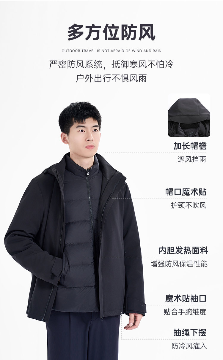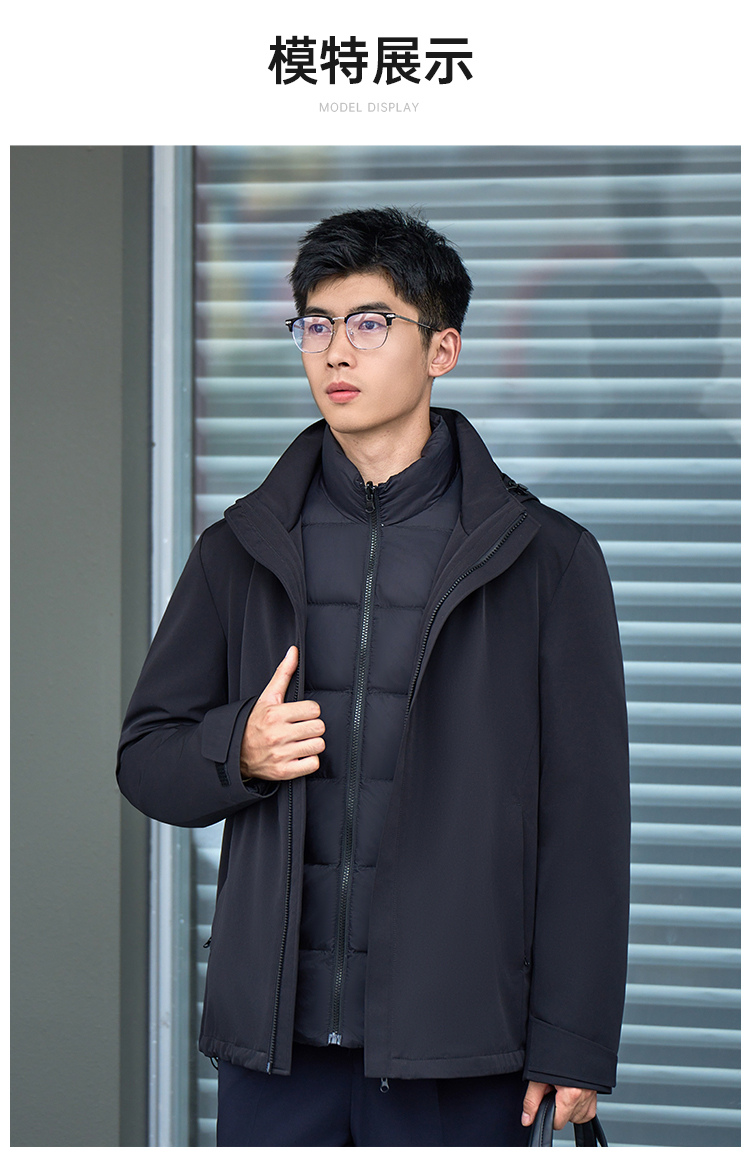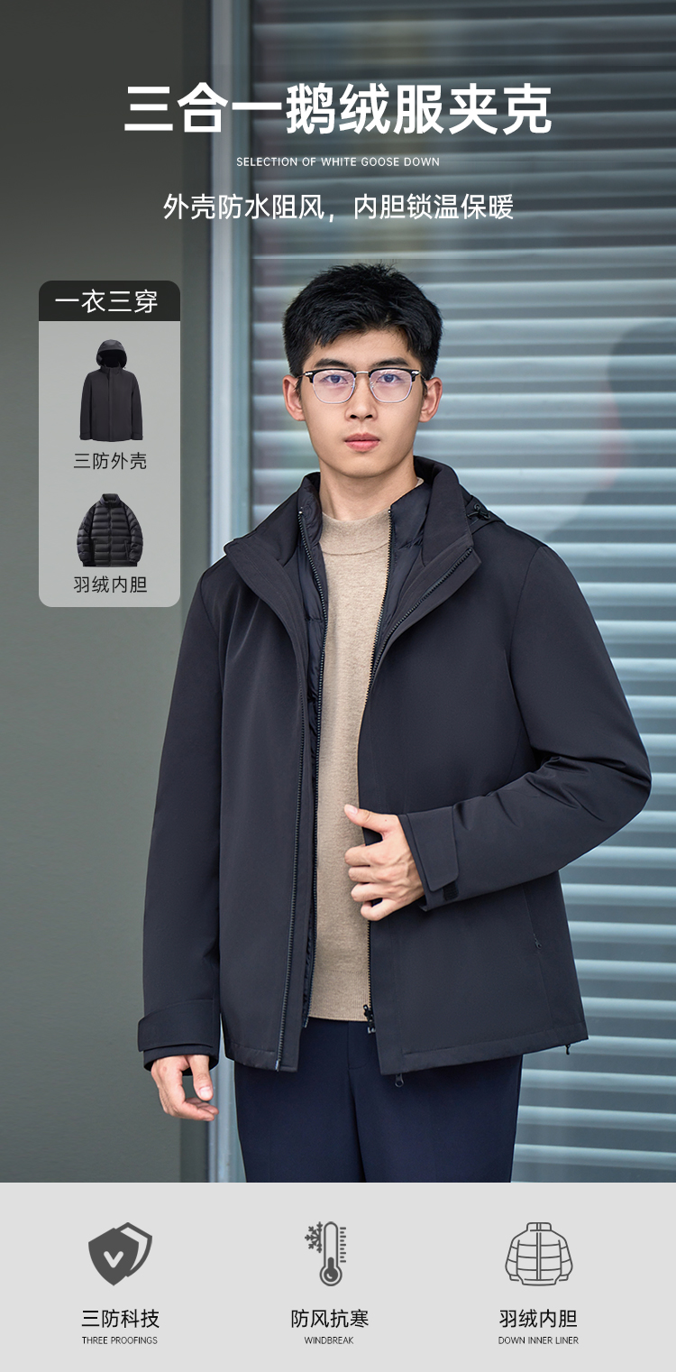 【三合一鹅绒服夹克】可拆卸内胆羽绒外套防风保暖休闲棉服YZ401