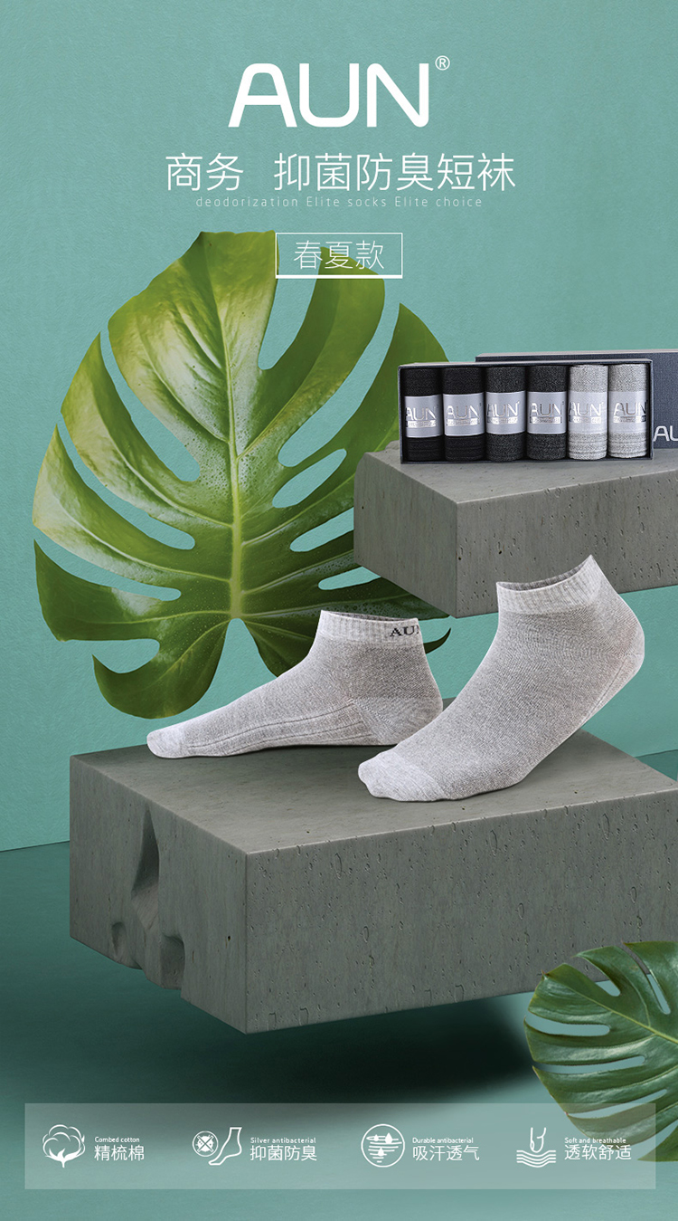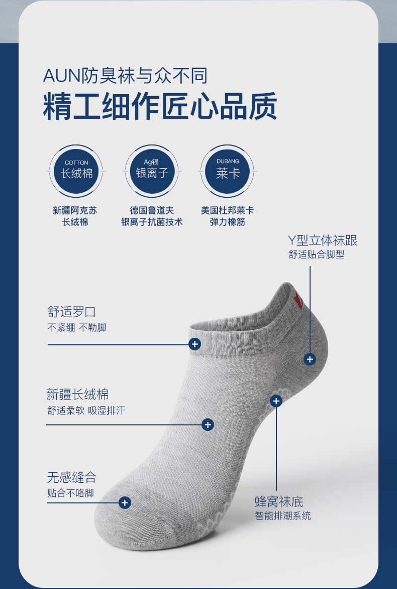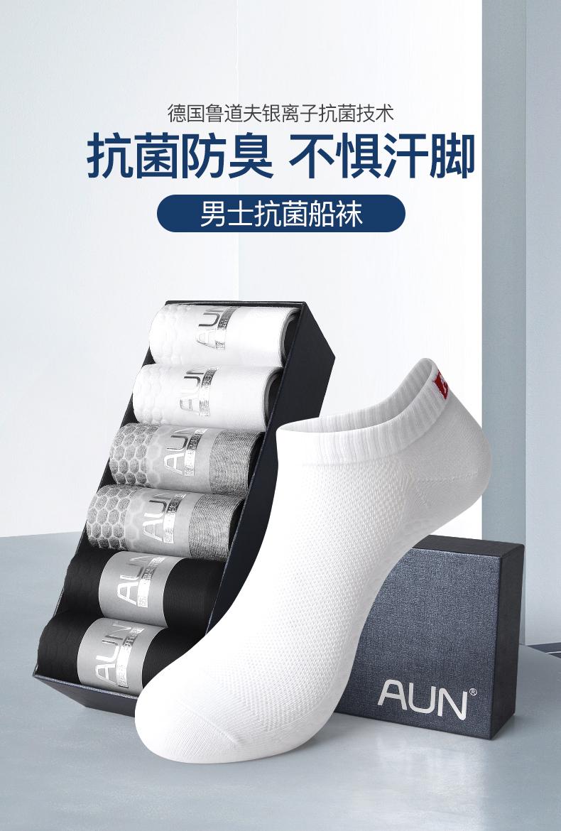 【时尚袜平板鞋运动鞋专用】AUN爱优恩男士女士防臭运动短袜船袜礼盒