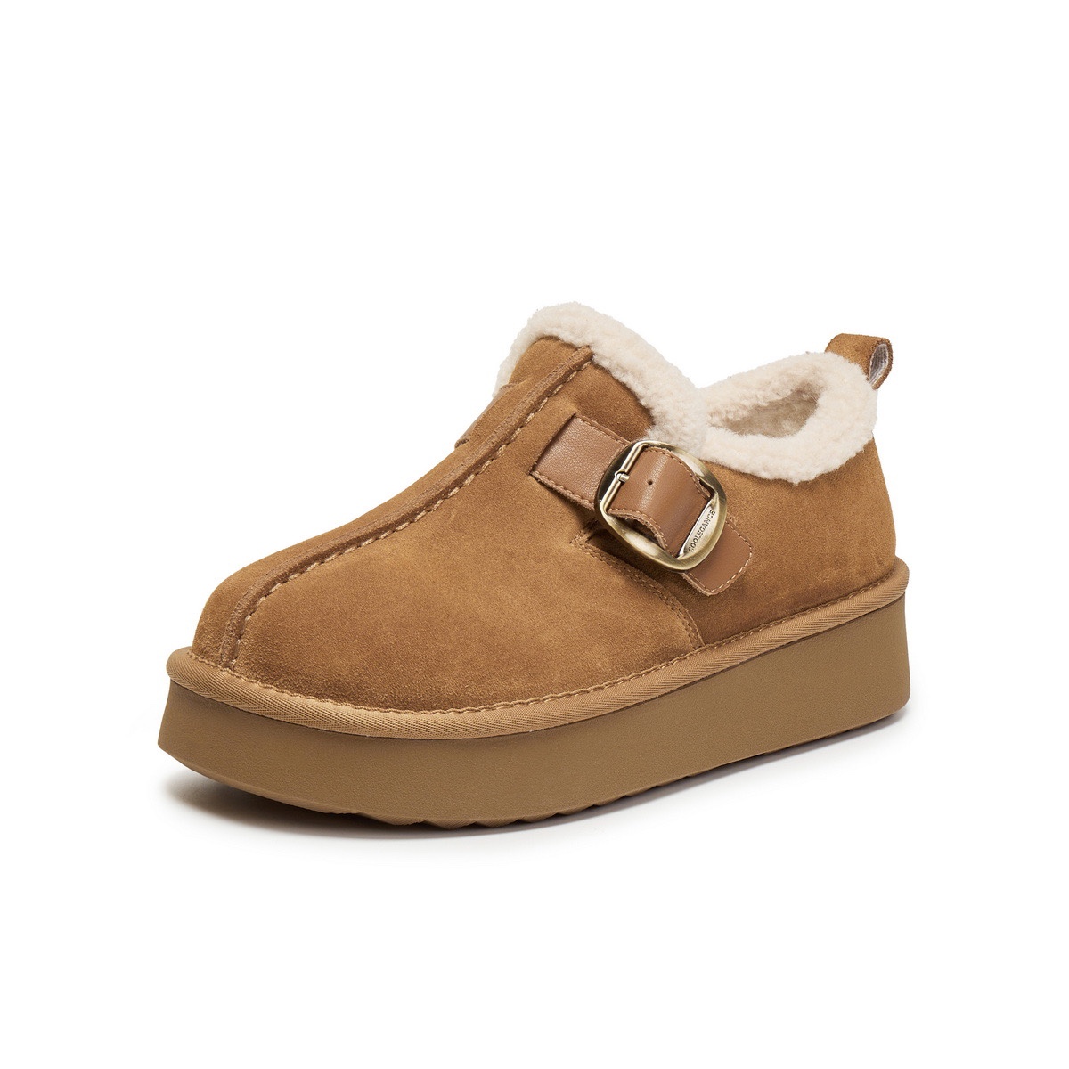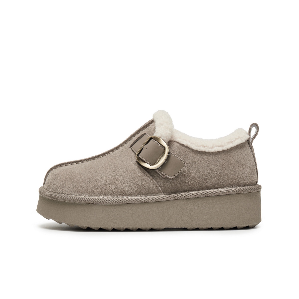 BF楼百丽毛毛乐福勃肯鞋厚底雪地靴2025冬季新款加绒保暖棉鞋E6D1DDM5