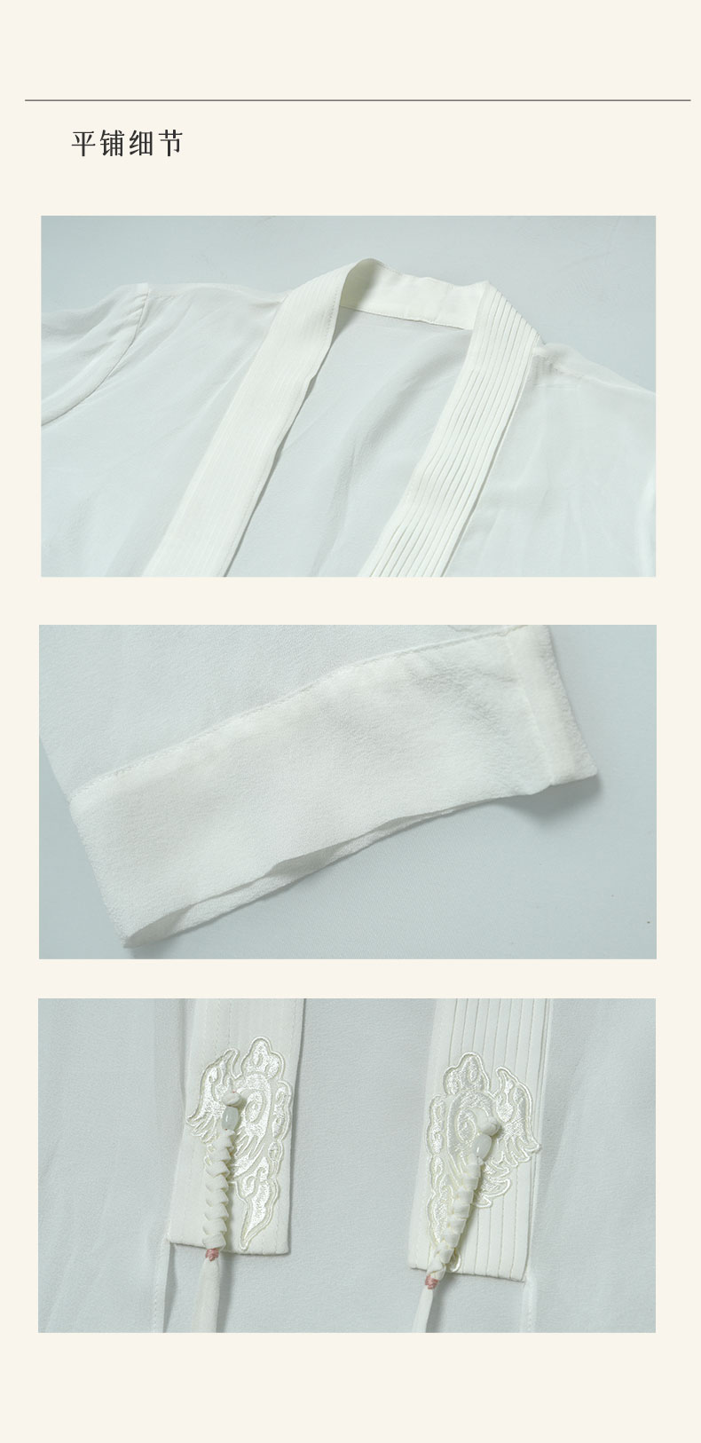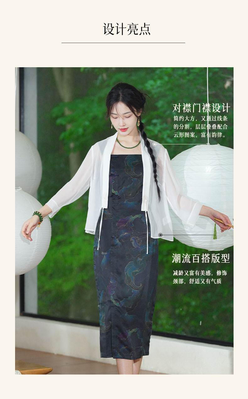 3)新中式百搭版型设计,减龄又富有美感,修饰颈部,舒适又有气质。