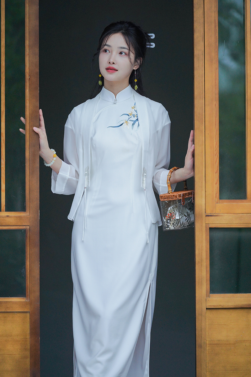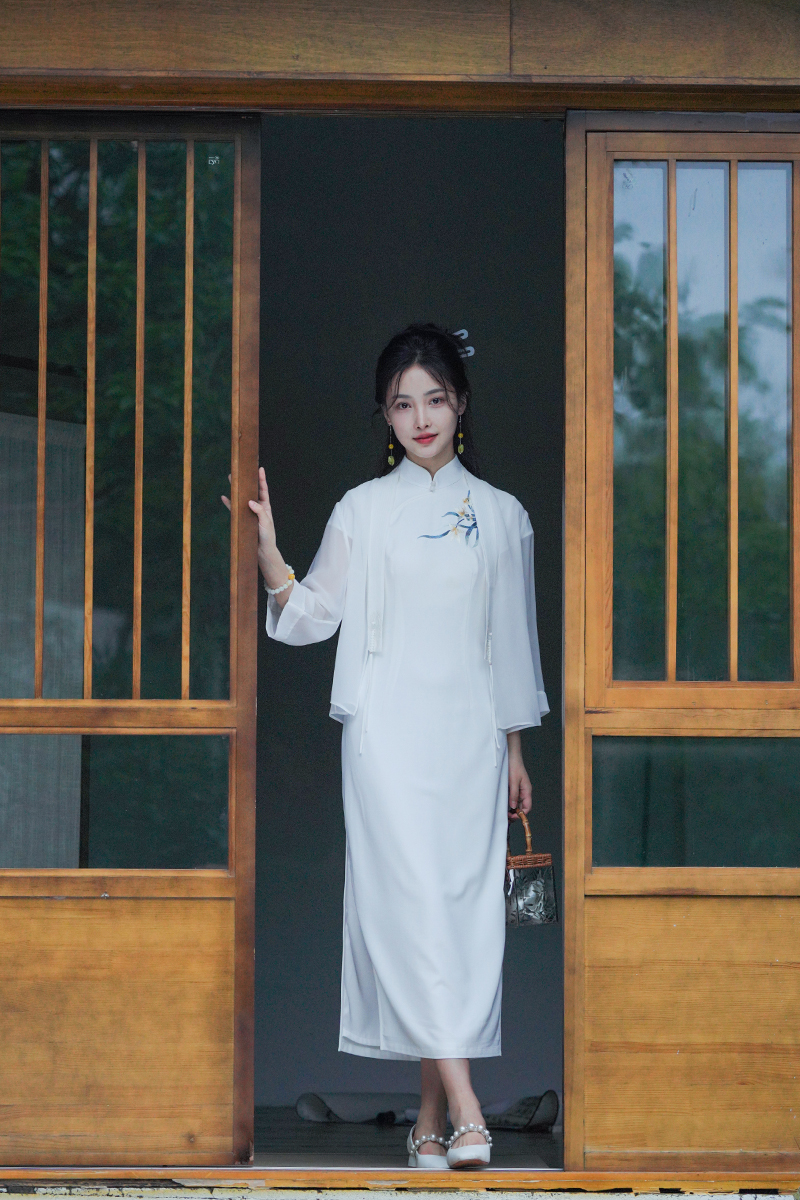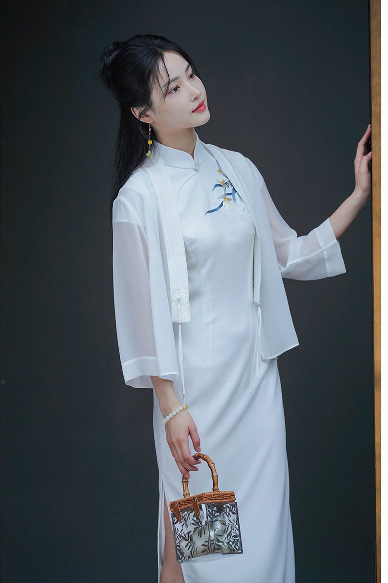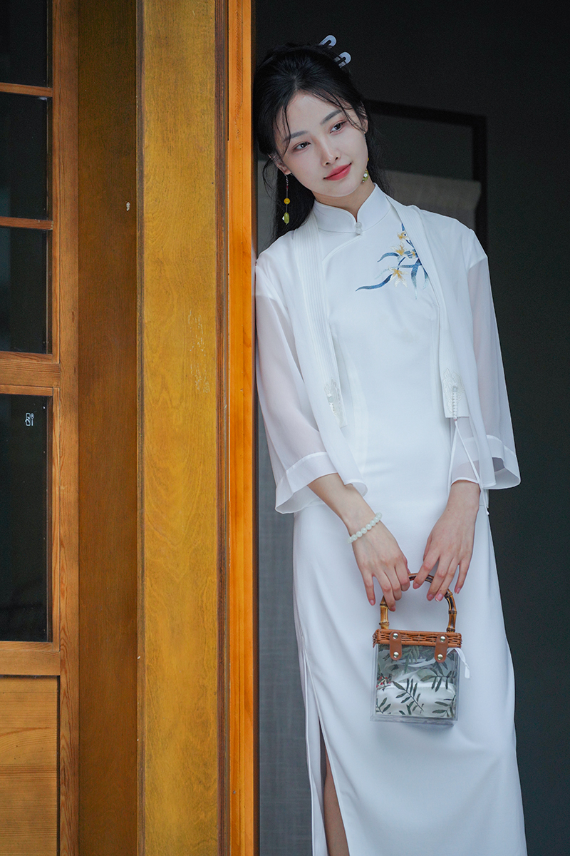 ✨初雪白纯净、仙气、明媚,就像夏日的冰雪一样,给大家带来清凉唯美感。搭配深色旗袍或者花卉图案的旗袍都绝美,像小龙女一样惹人怜爱。
