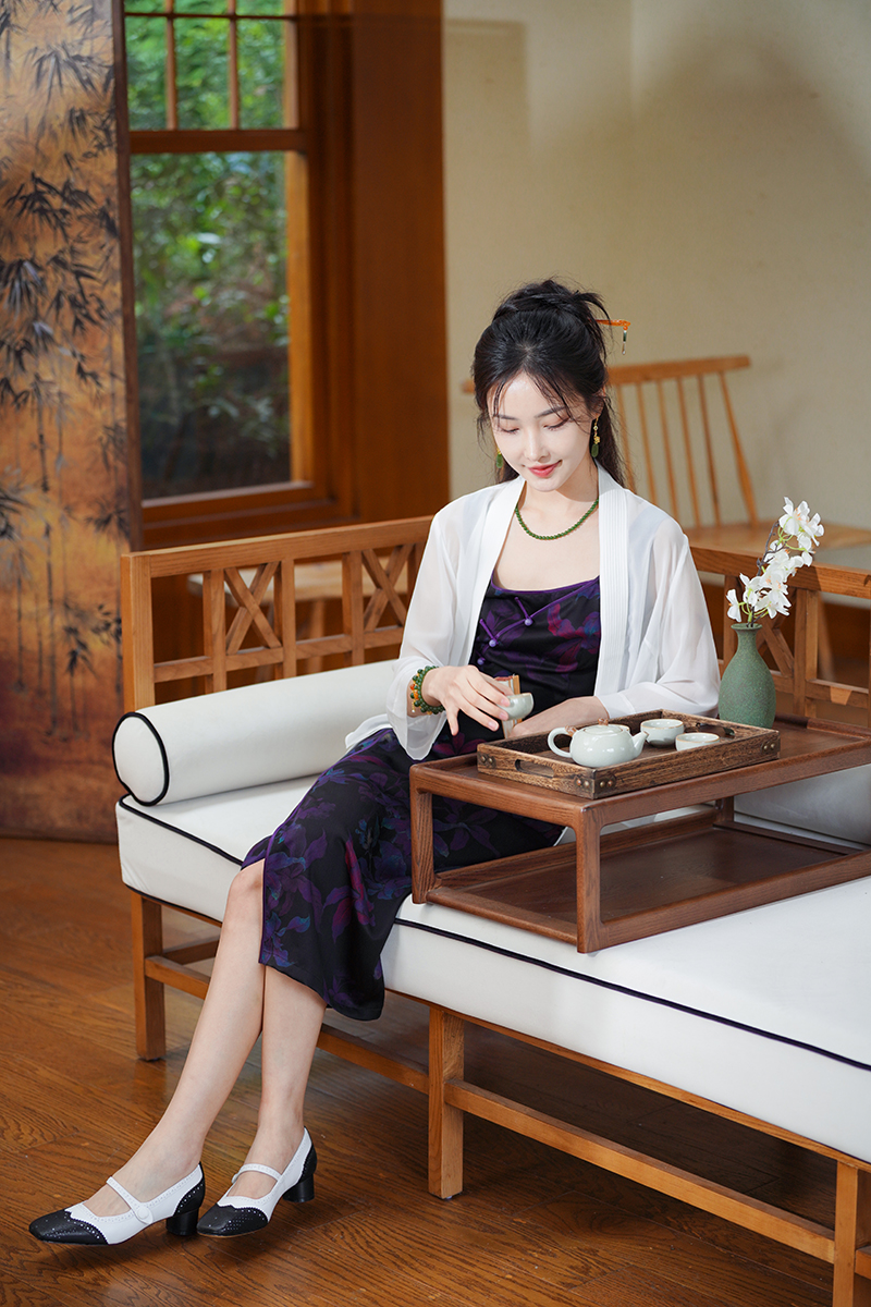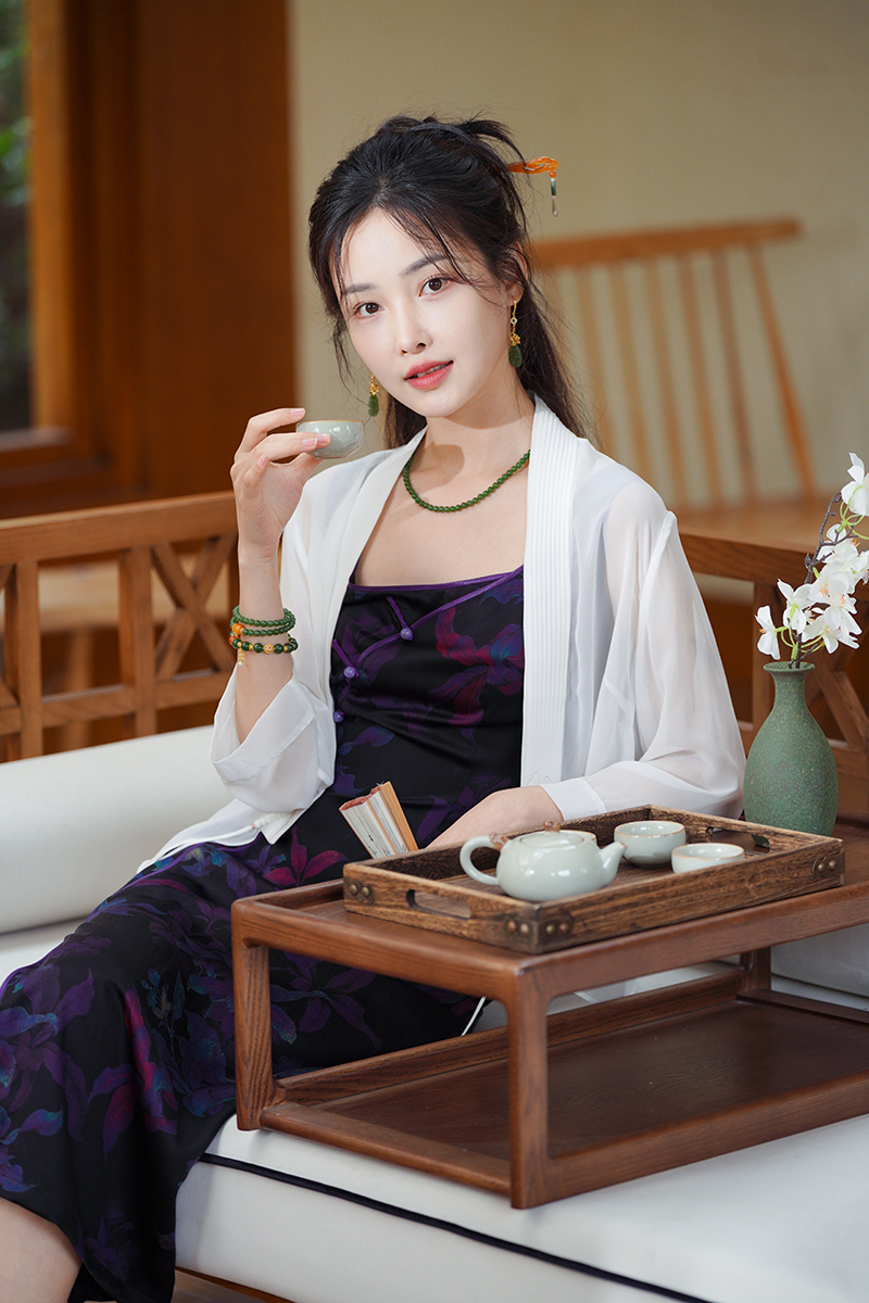 黑白双色绘风雅,真丝润养夏日梦