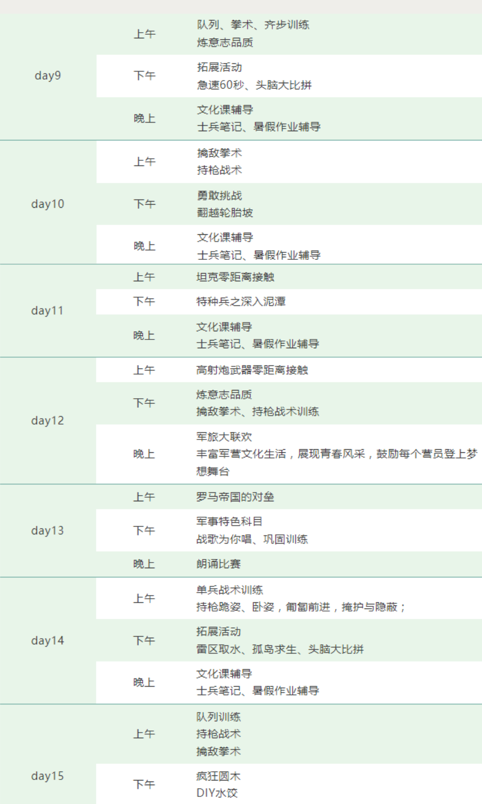 营期时长:7日、14日、21日