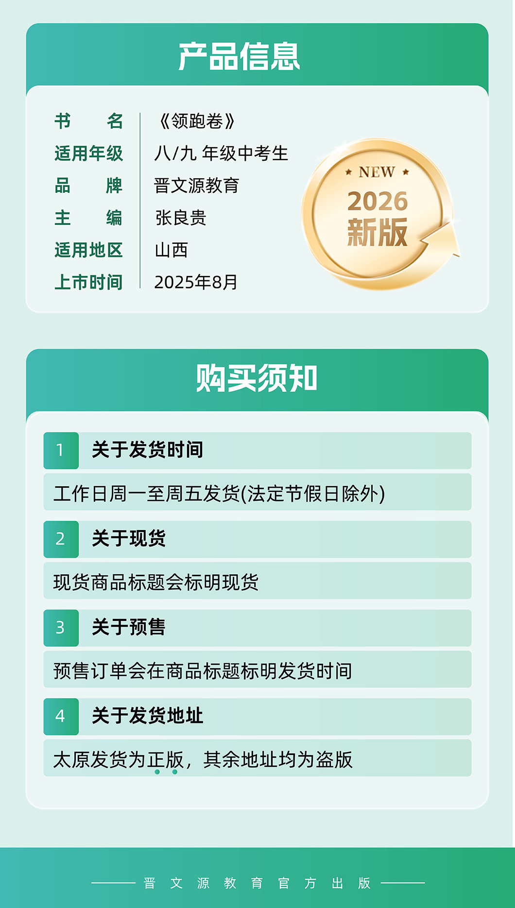 【全套8折】26年山西专版真题套卷领跑卷