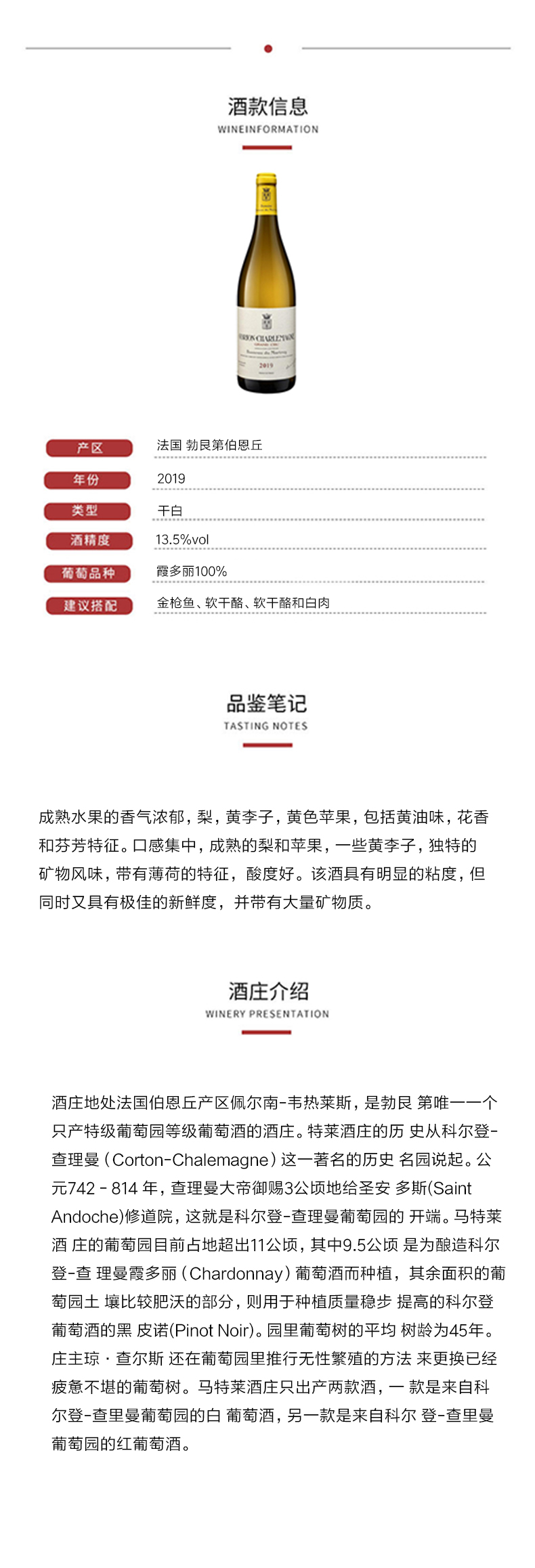 柏诺玛爵酒庄高登查理曼干白葡萄酒 2020年