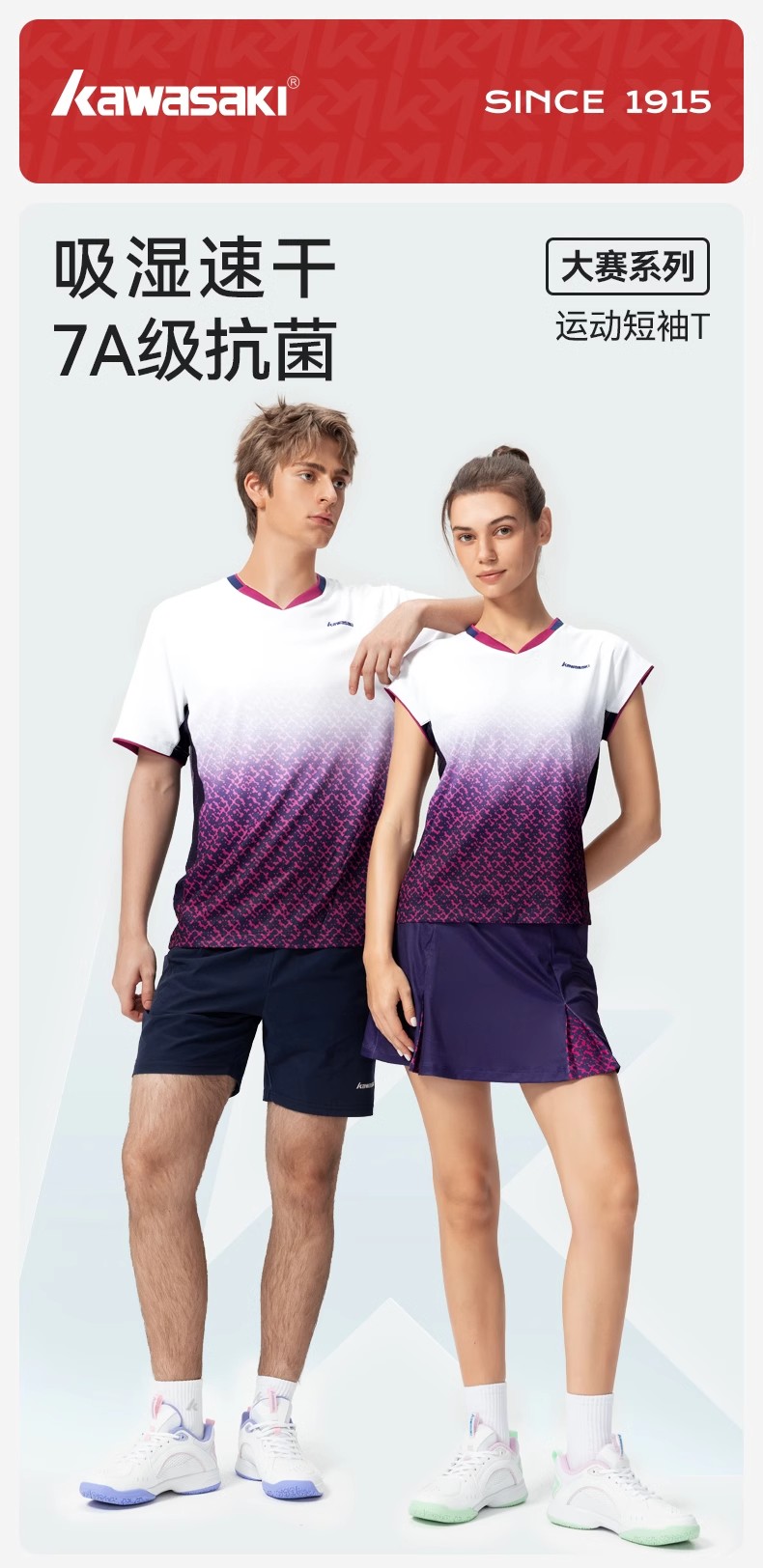 川崎 男女款 V领短袖T恤 K1C02-C1010/K1C02-C2010