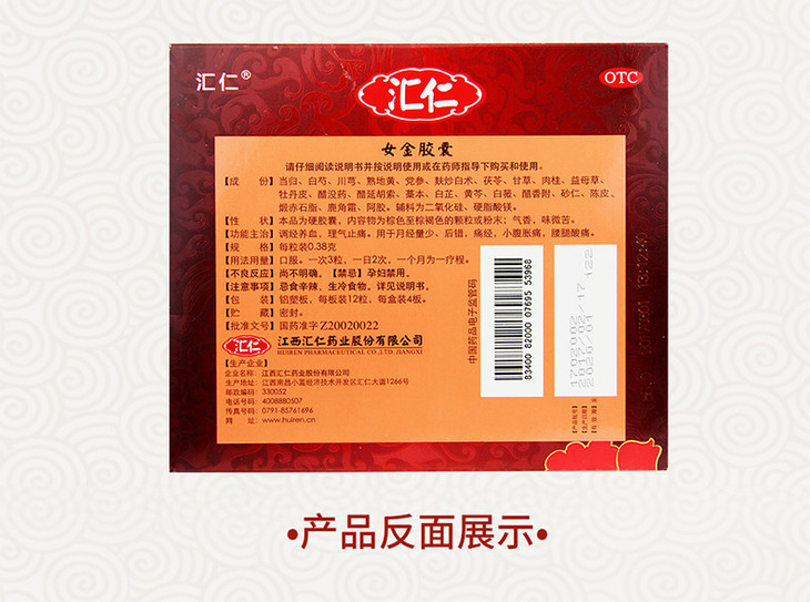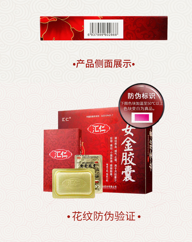 汇仁 女金 胶囊 月经不调量少 调经养血腰腿酸痛痛经药品
