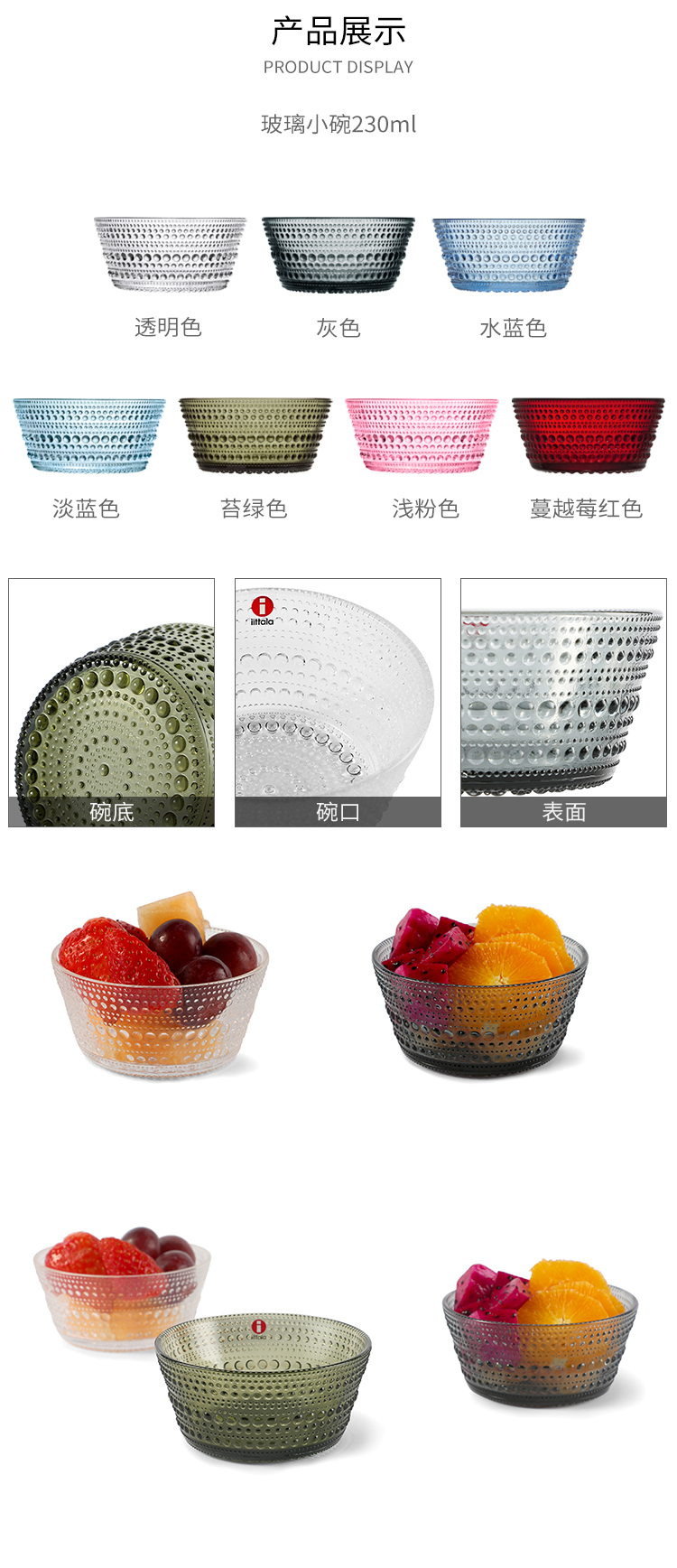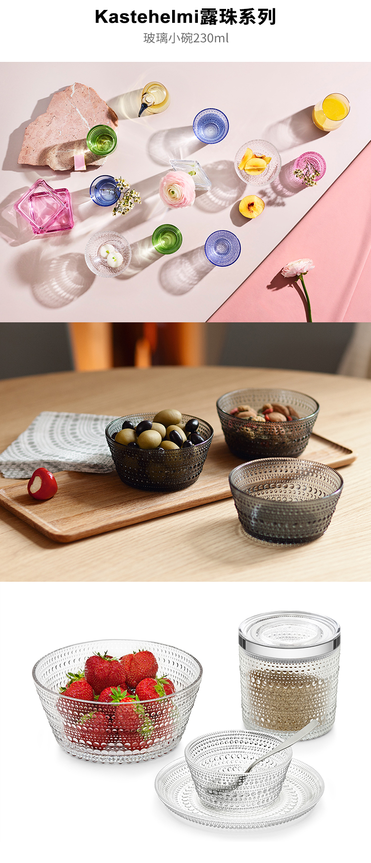 【6F】廊湾芬兰进口Iittala伊塔拉露珠系列玻璃碗大沙拉碗水果碗创意设计礼物米饭碗汤碗 露珠系列-苔绿色玻璃小碗0.23升