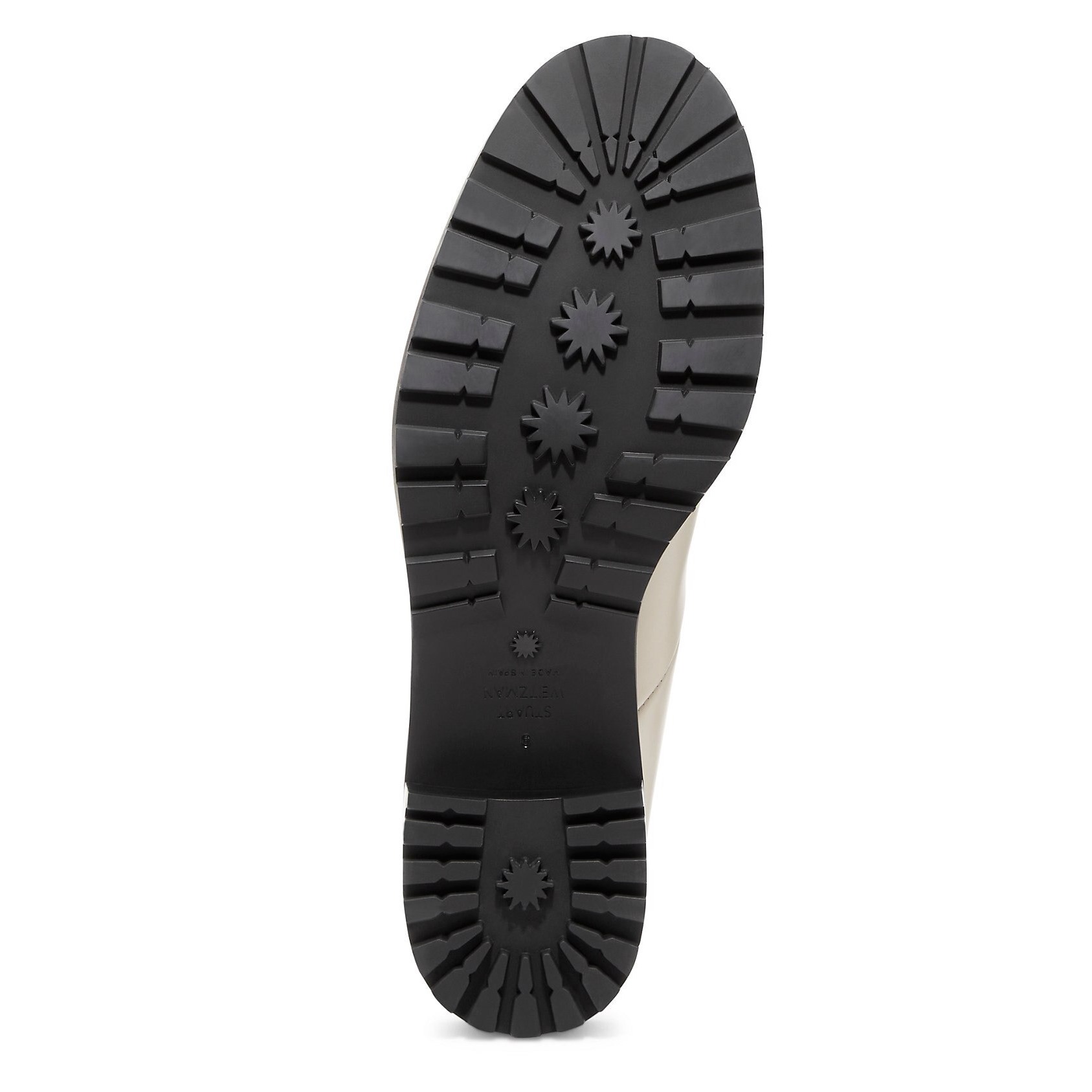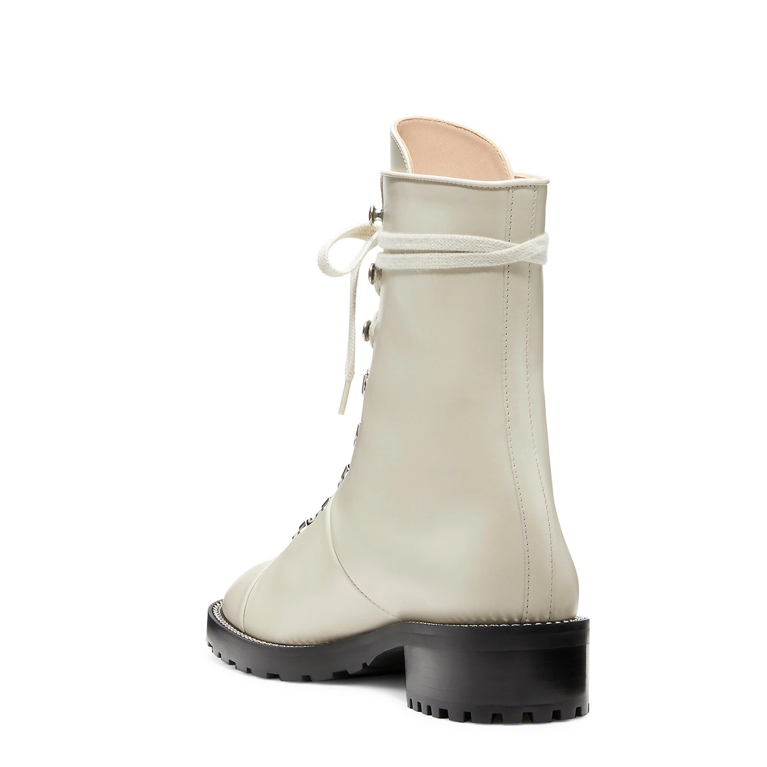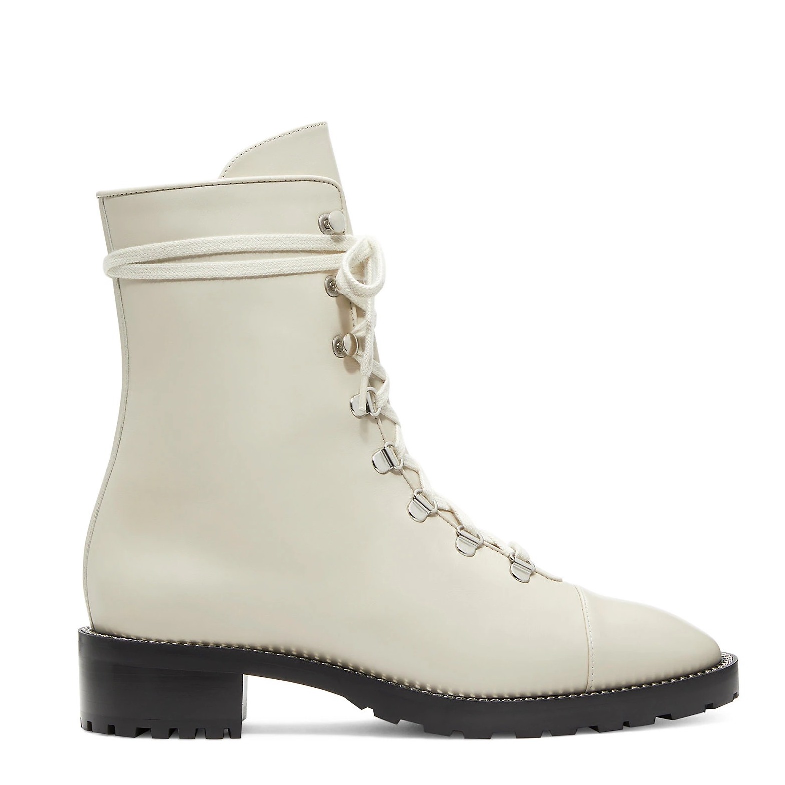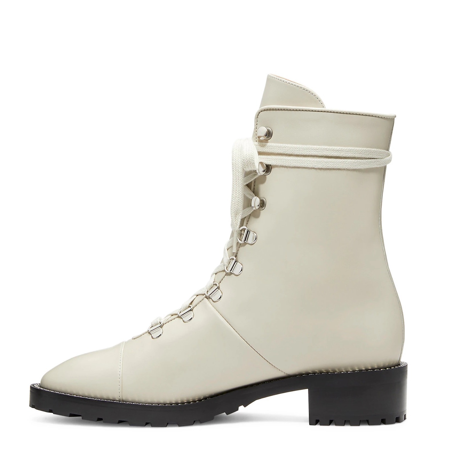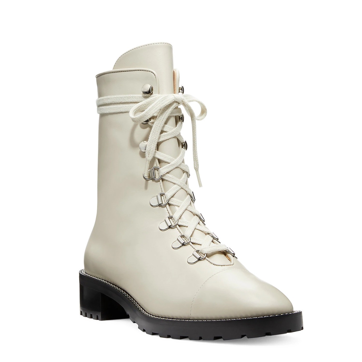 该靴子是将经典的作战靴与现代金属装饰相结合,打造出既优雅又前卫的新款式。这些金属装饰包括醒目的金色链条鞋底细节和相配的金属鞋眼装饰。设计方面,这款靴子采用了时尚与功能相结合的理念,具有细微的防滑鞋底和20毫米的低块跟,更加适合日常穿搭。