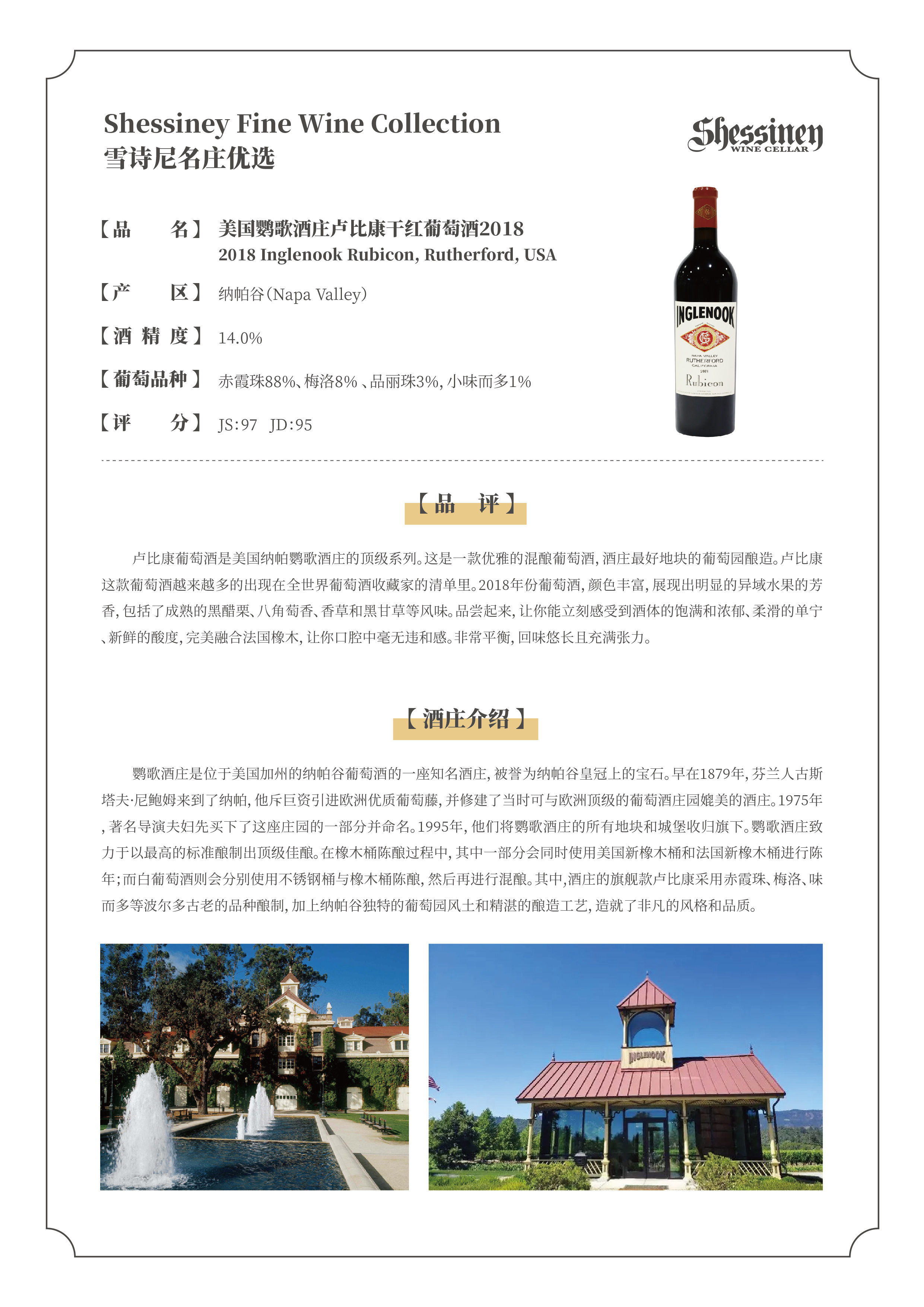 美国鹦歌酒庄卢比康干红葡萄酒2018/2019