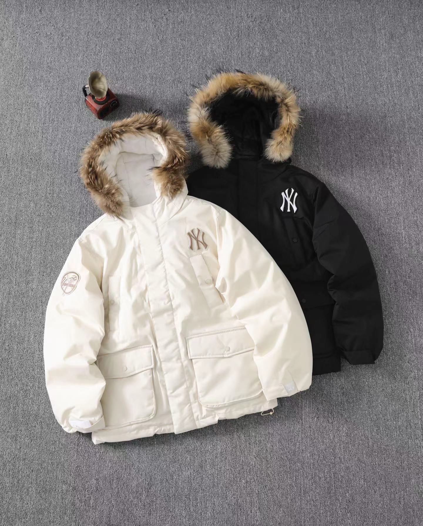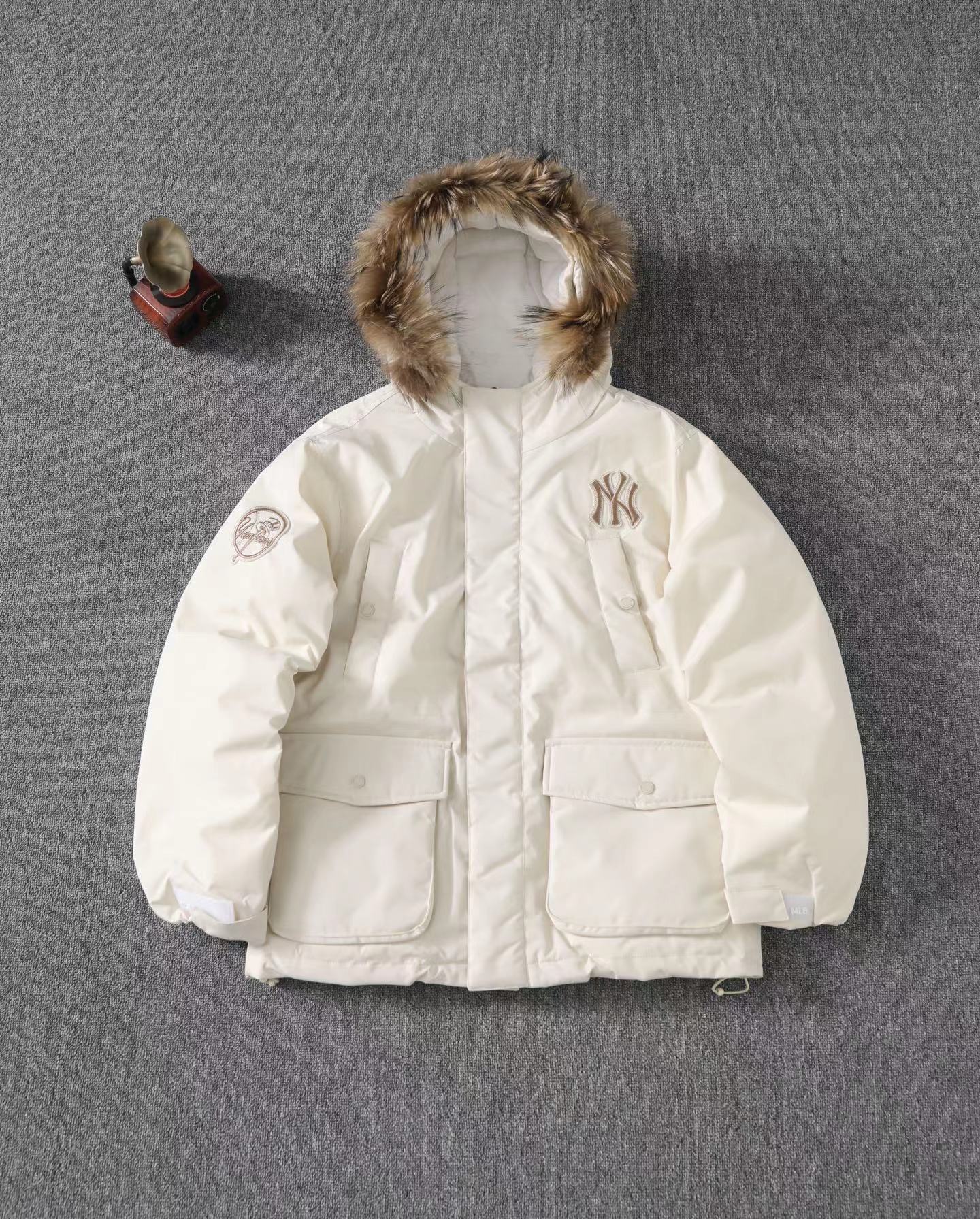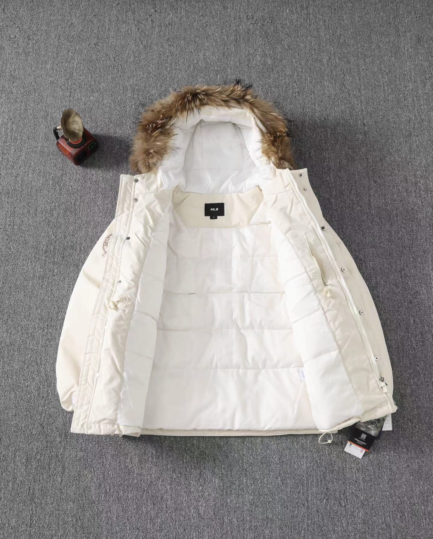 大标带毛字母连帽工装中长款羽绒服 帽子采用貂子毛 抗旱零下20度 轻松过冬 脖子贴身 一点都不冻脖子