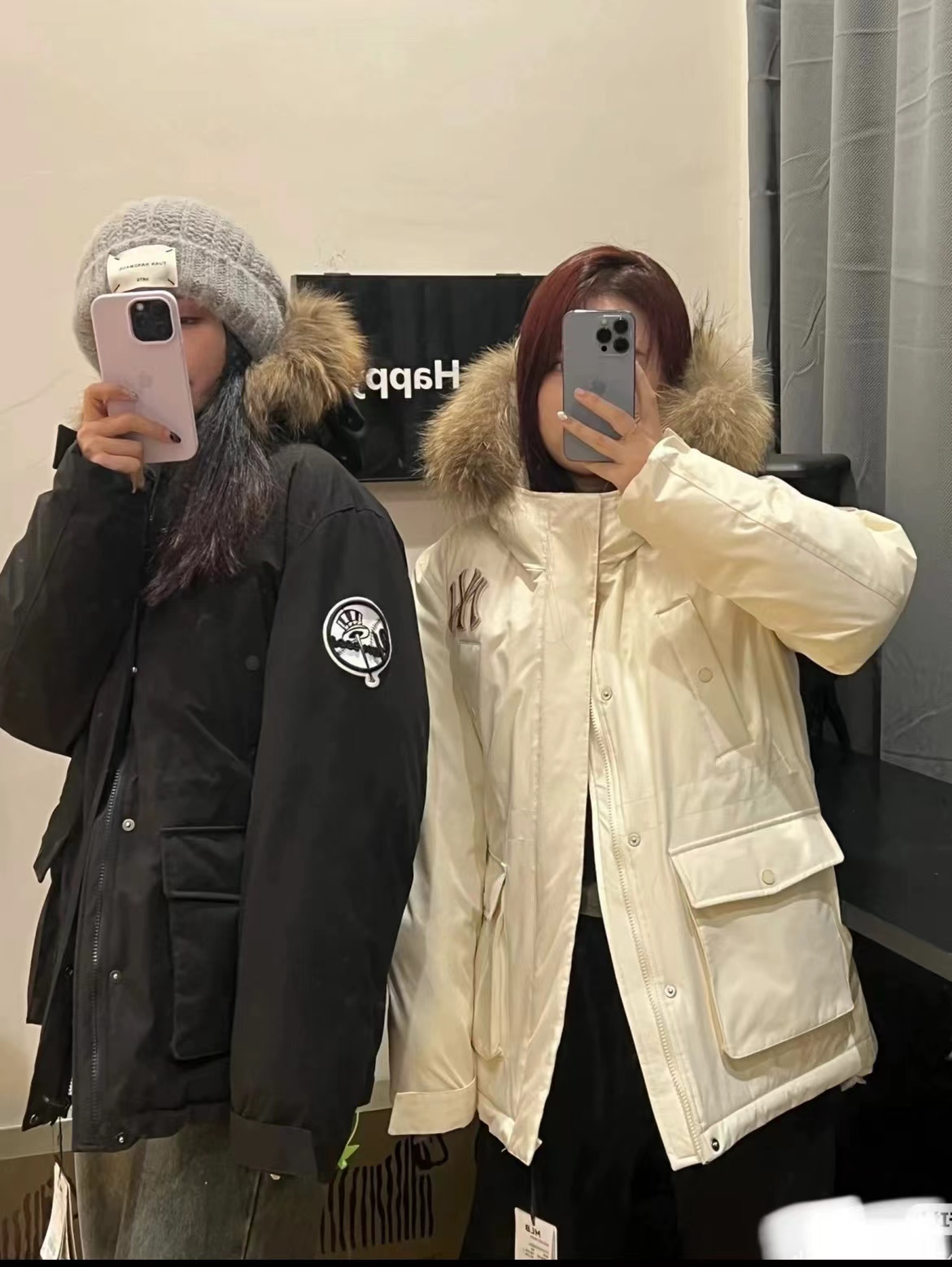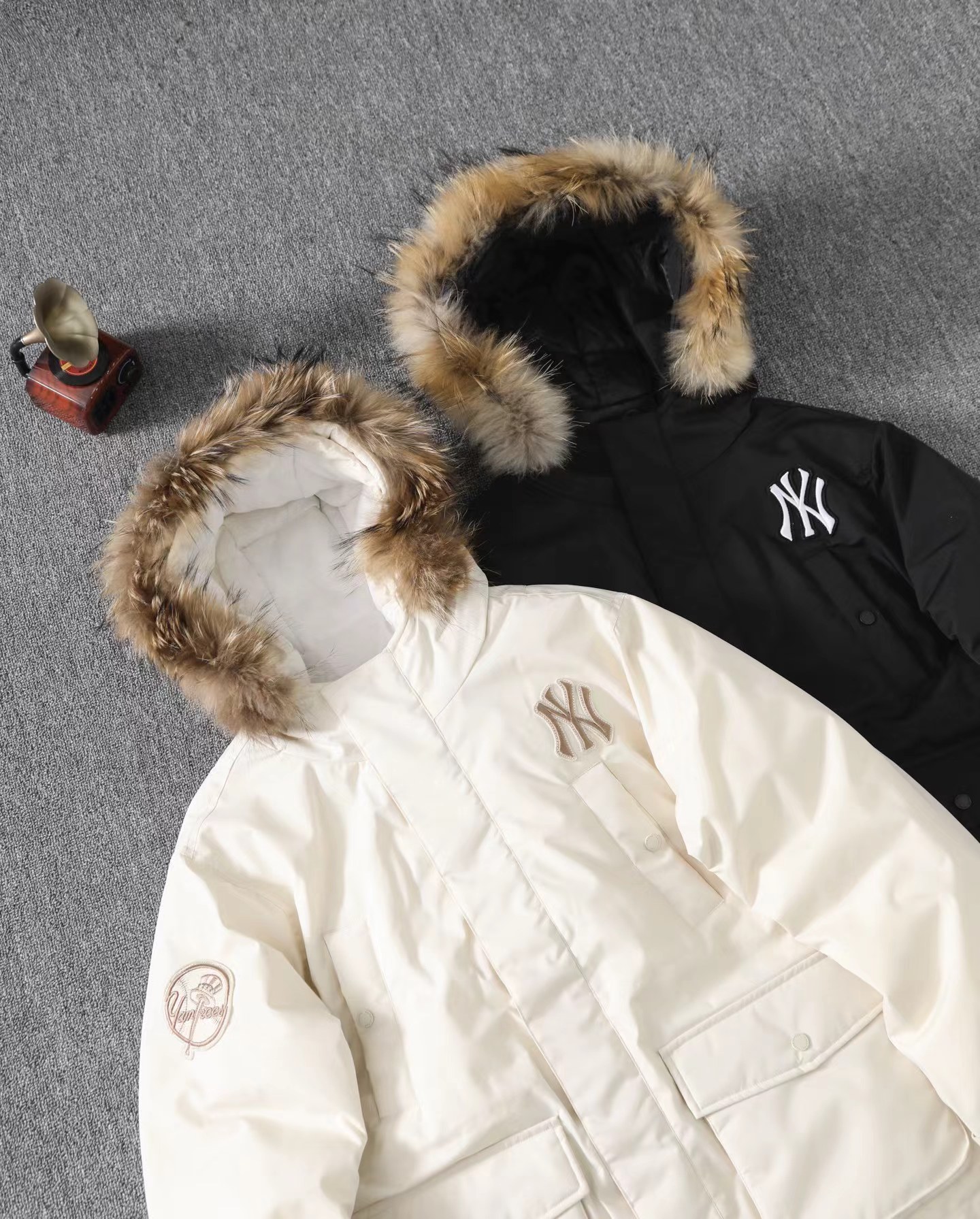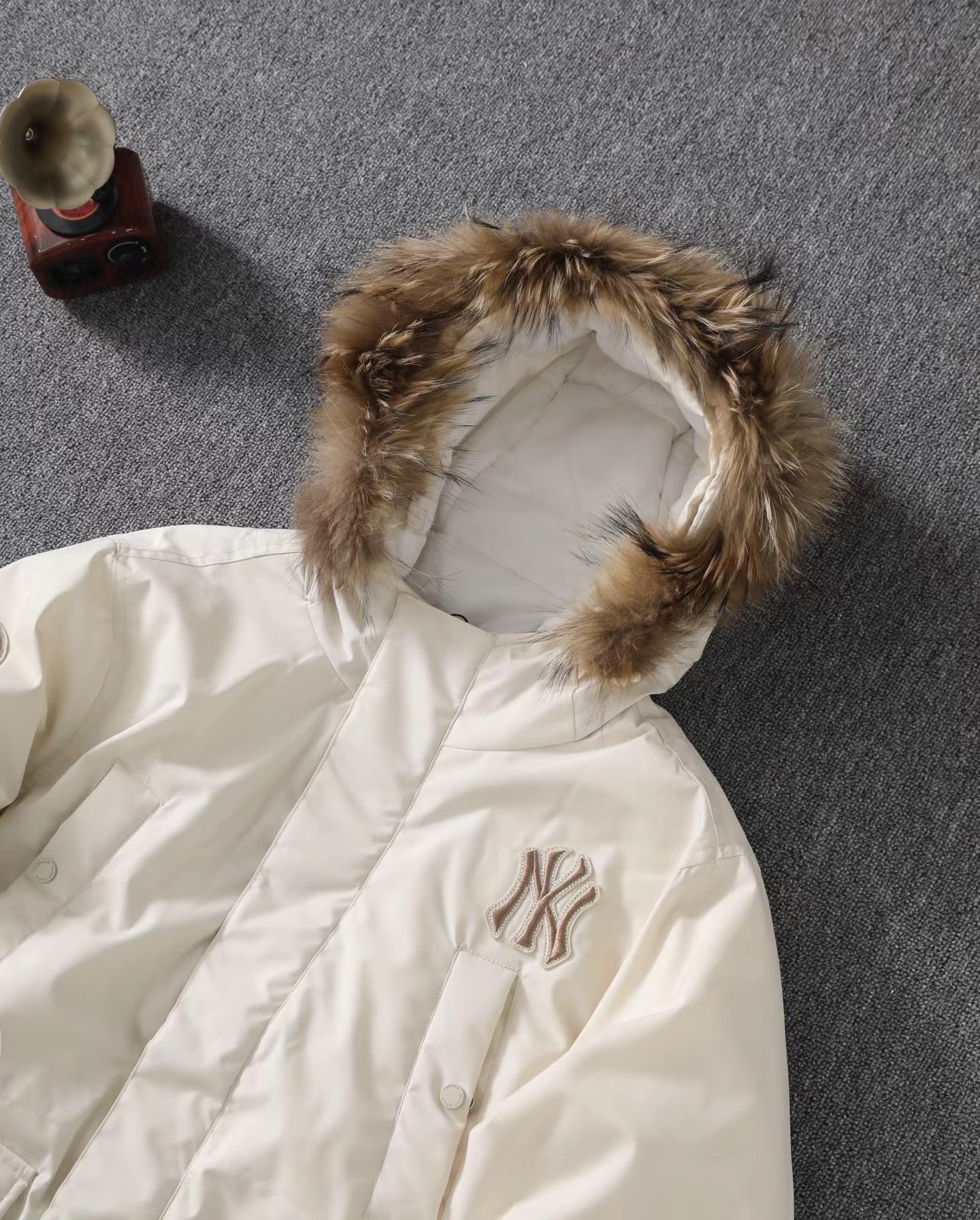 大标带毛字母连帽工装中长款羽绒服 帽子采用貂子毛 抗旱零下20度 轻松过冬 脖子贴身 一点都不冻脖子
