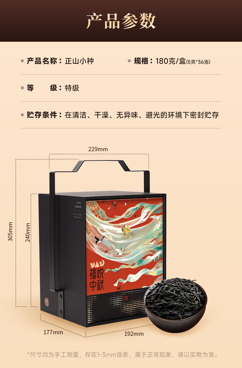 【中秋礼盒】茶叶 喜悦中秋 正山小种 中秋礼盒 红茶 茶叶礼盒 茶饮 五虎 180g