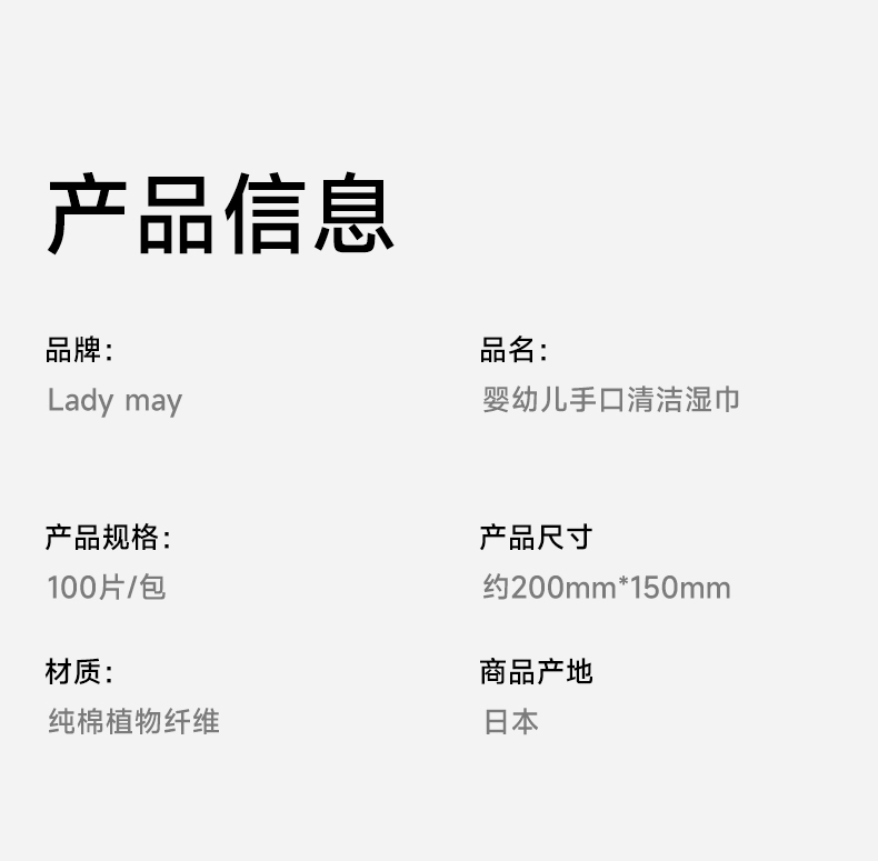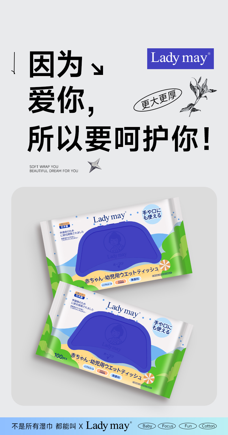 【清仓】9楼母婴生活馆 Ladymay进口手口专用加厚湿巾纯水湿纸巾敏感肌可用家庭装100抽 吊牌价:22.9元 活动价:18.8元