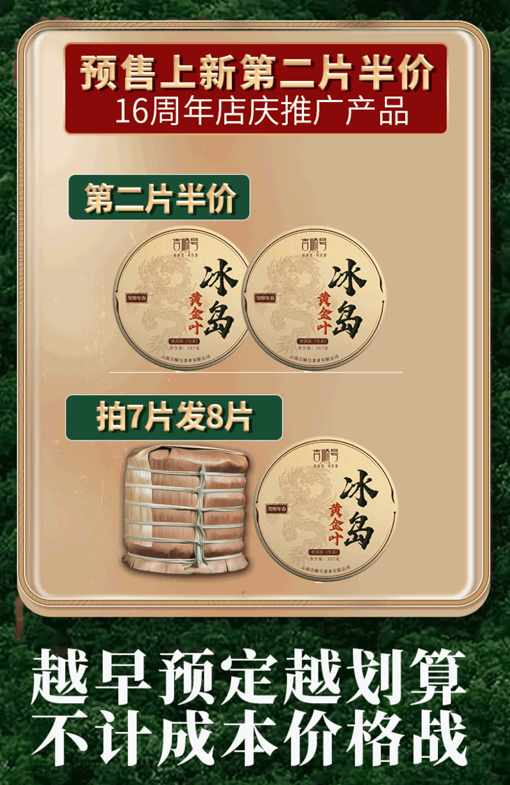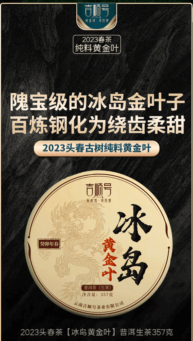 第2份半价!2023春茶 吉顺号冰岛普洱茶生古树茶黄金叶357克