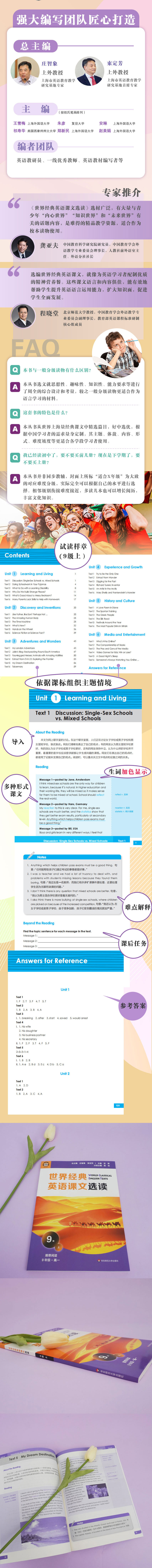 世界经典英语课文选读9级上 精选课文紧贴课标附有声伴读 认识自我世界文化人与自然人际关系 9~10年级