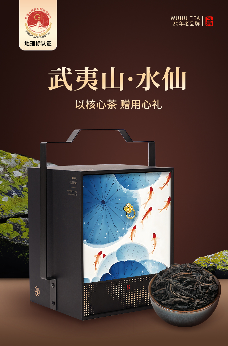 【年货礼盒】茶叶 水彩荷花锦鲤 水仙 武夷岩茶 乌龙茶 茶叶礼盒 茶饮 五虎 288g