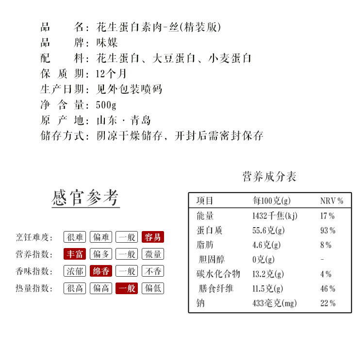 花生蛋白素肉500克 精装口感更好 植物蛋白 老少均可食用