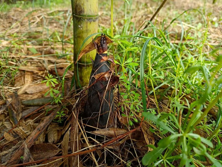 这雷竹笋就生长在潘姐家那片生态山核桃林下面的竹林中,纯野生竹笋,自然生长,鲜中带甜,味道特别鲜美。