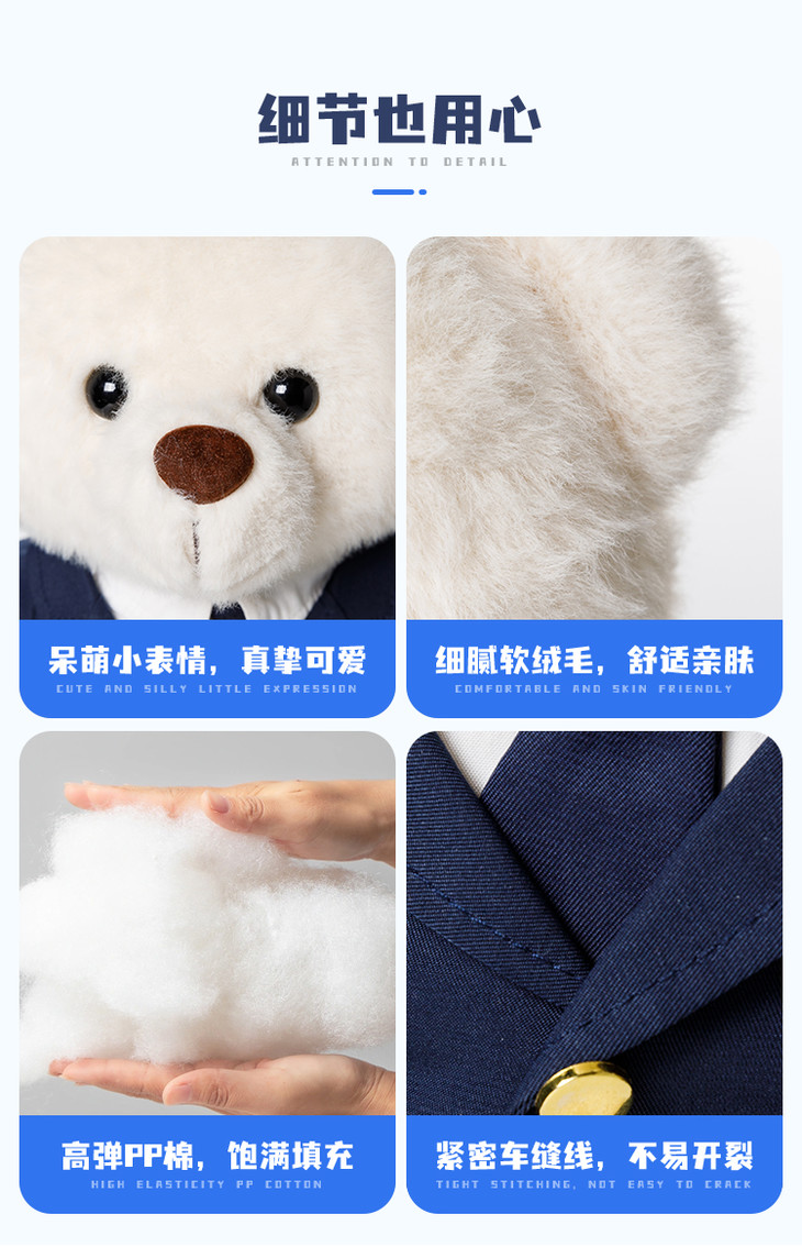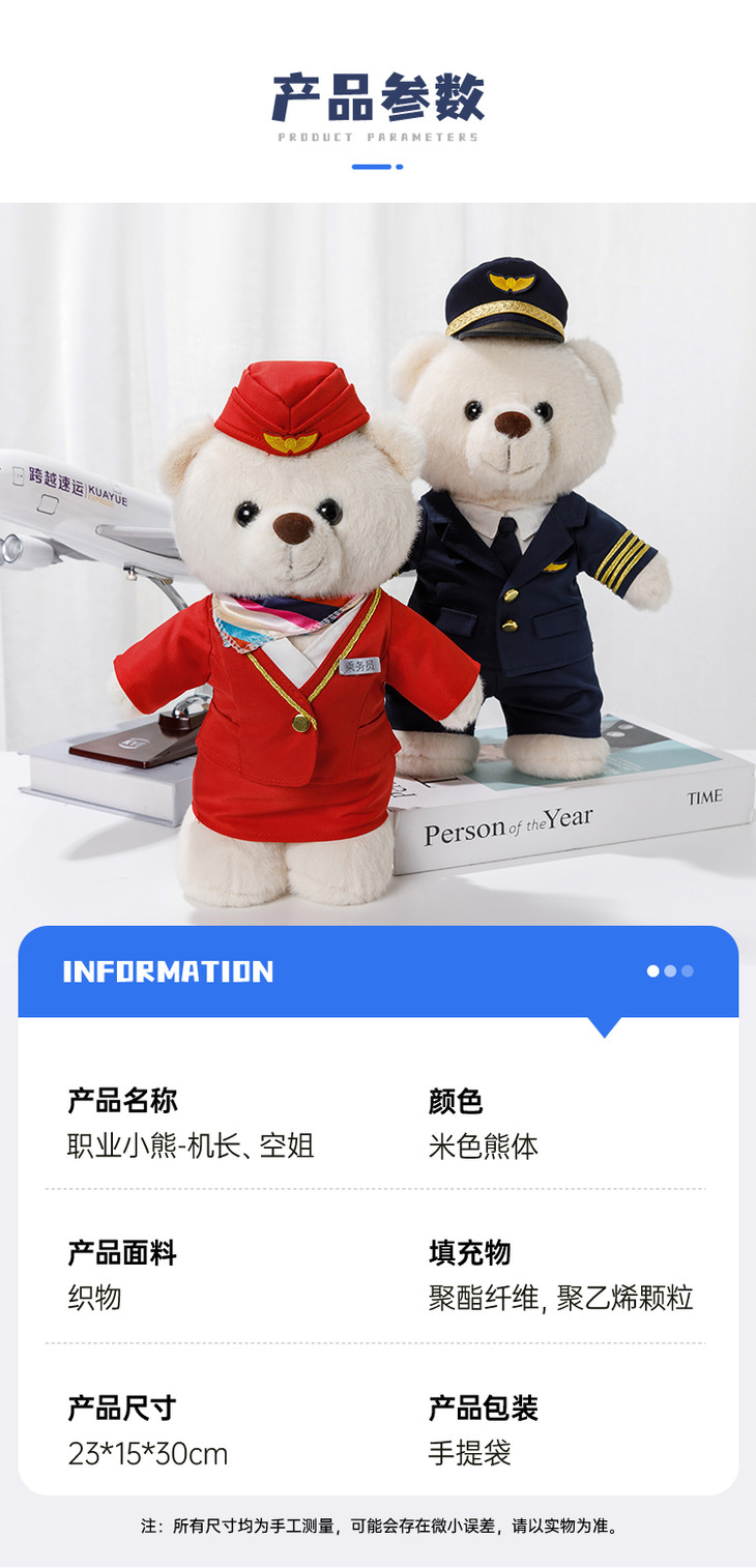 【机长&空姐站姿熊】可定制创意毛绒职业小熊公仔儿童玩具服装可脱送礼礼物