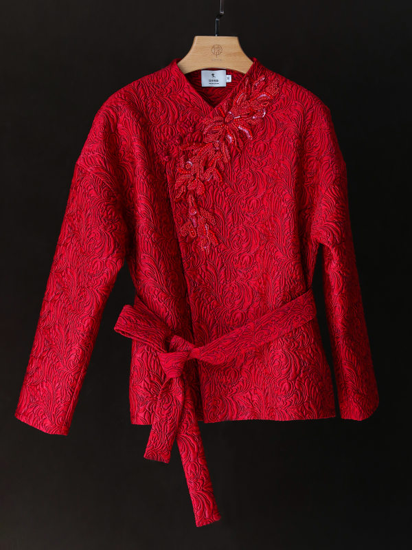盛唐牡丹 |老工艺花蕾缎真丝马甲正反两穿