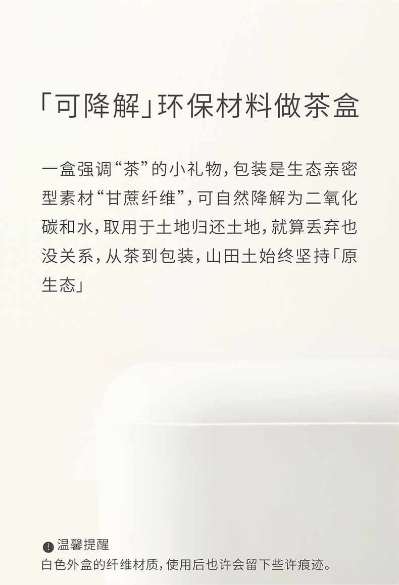 山田土是一个茶品牌。致力于走访茶区,寻找地方茶。亲眼看,亲口尝,将心比心挑选优质原料、把关工艺、审评质量,以有趣的方式呈现一杯干净好茶,让你饮用安心,感官愉悦。 产品包括:日常口粮茶,节庆茶礼,茶器