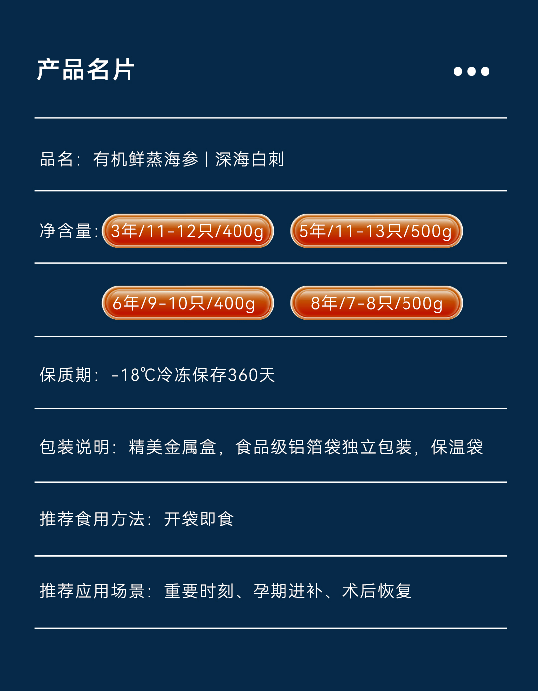 【鲜蒸海参】广参堂-镇店鲜食工艺 黄金85℃ 全程非水煮 500克/盒