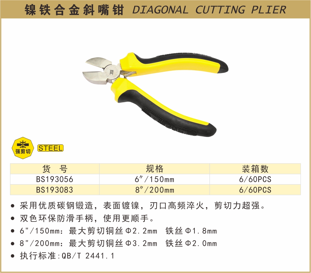 波斯镍铁合金斜嘴钳6寸8寸 BS193056/BS193083