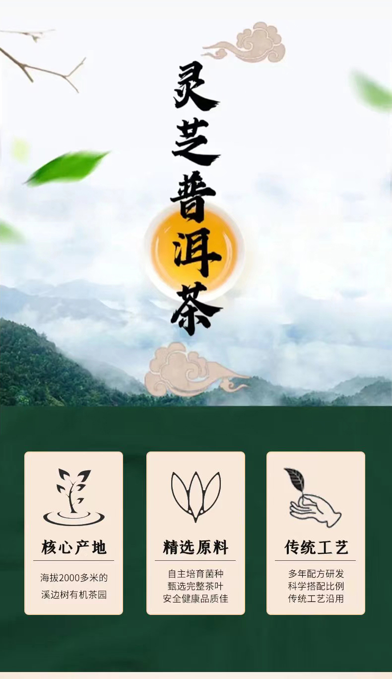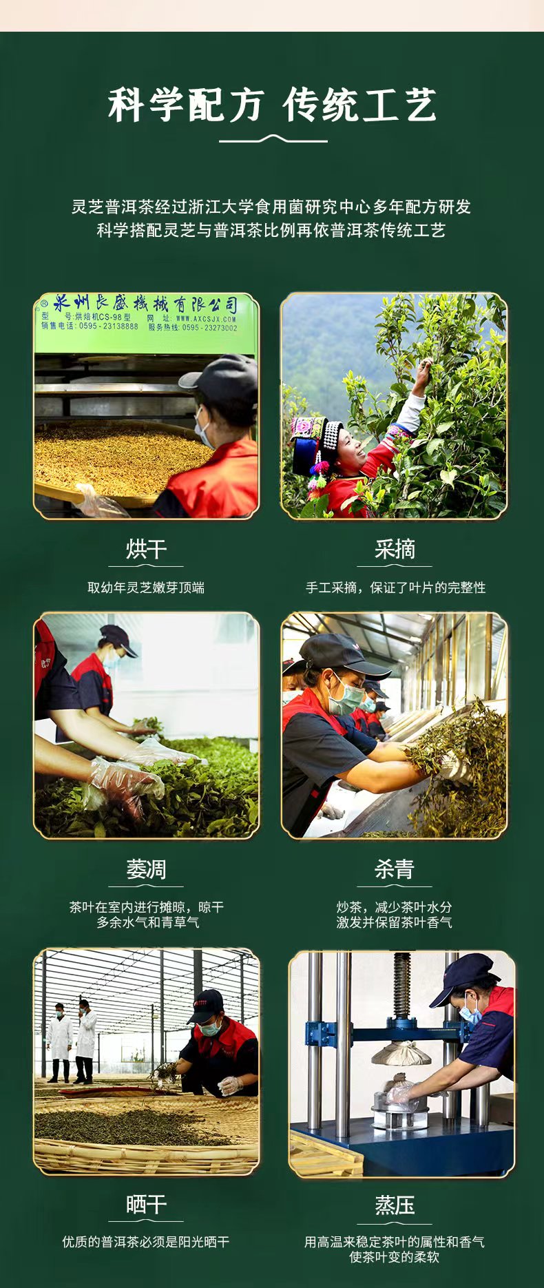 【浙大食用菌研究中心研发】灵芝普洱茶-百年普洱-生茶茶饼357g
