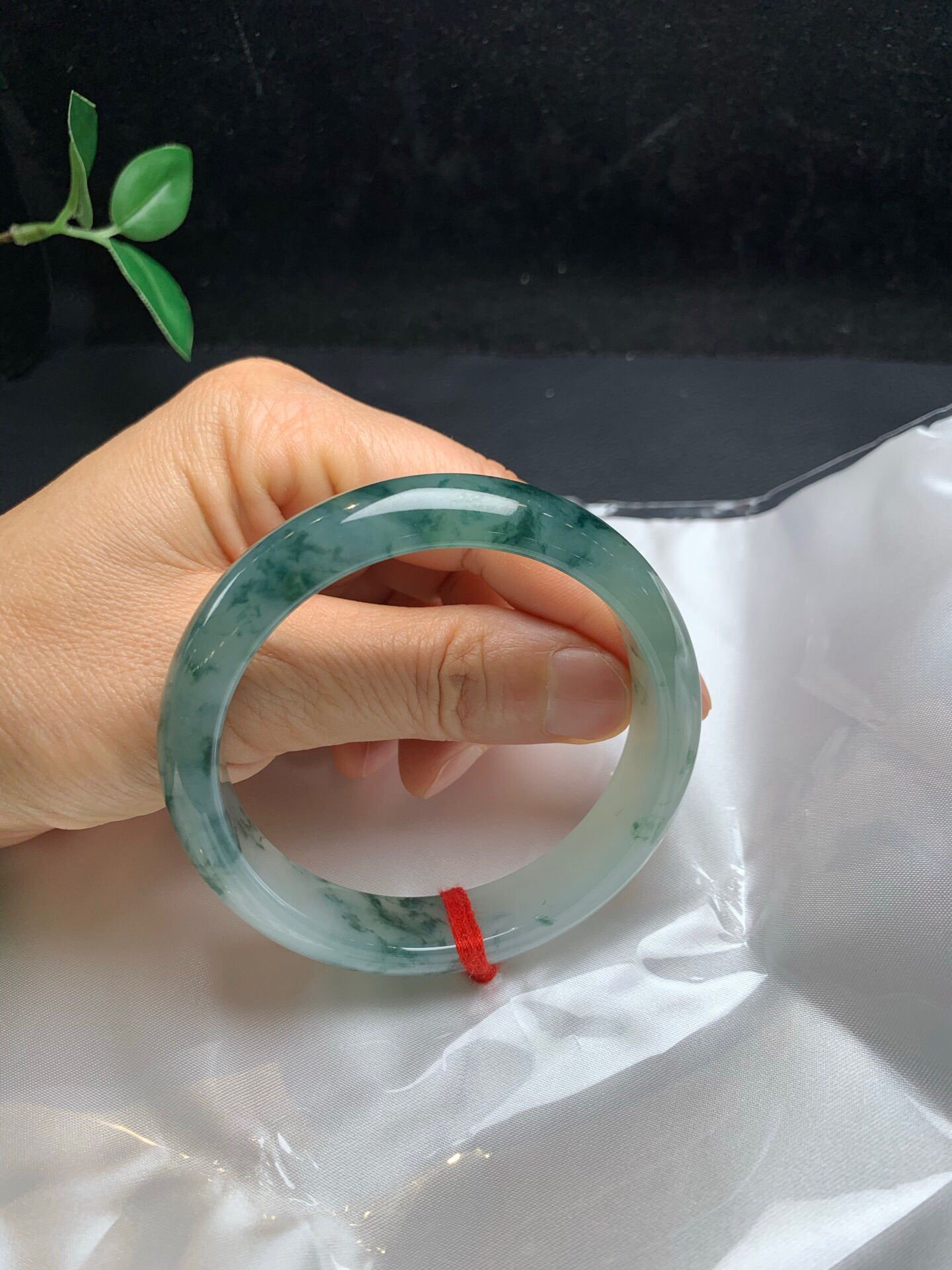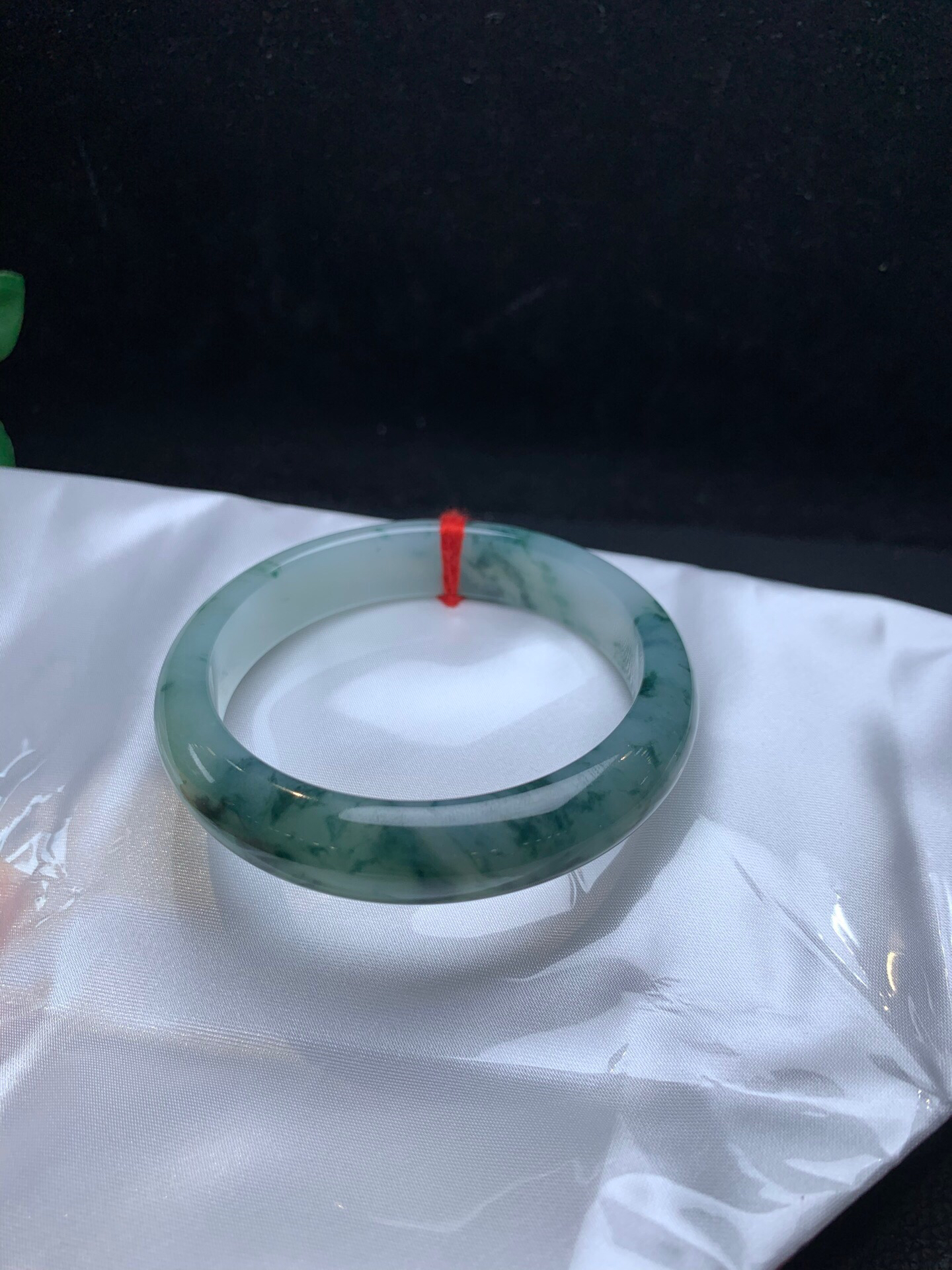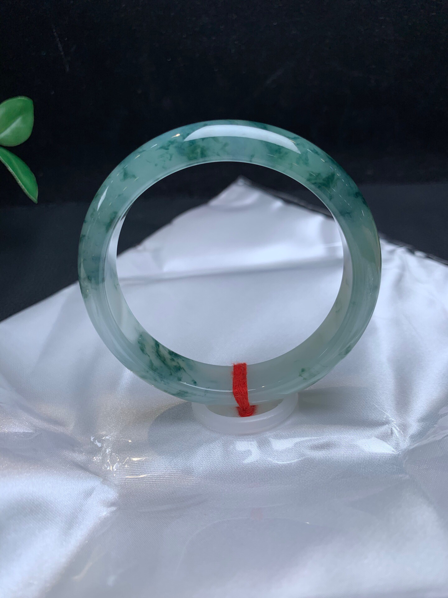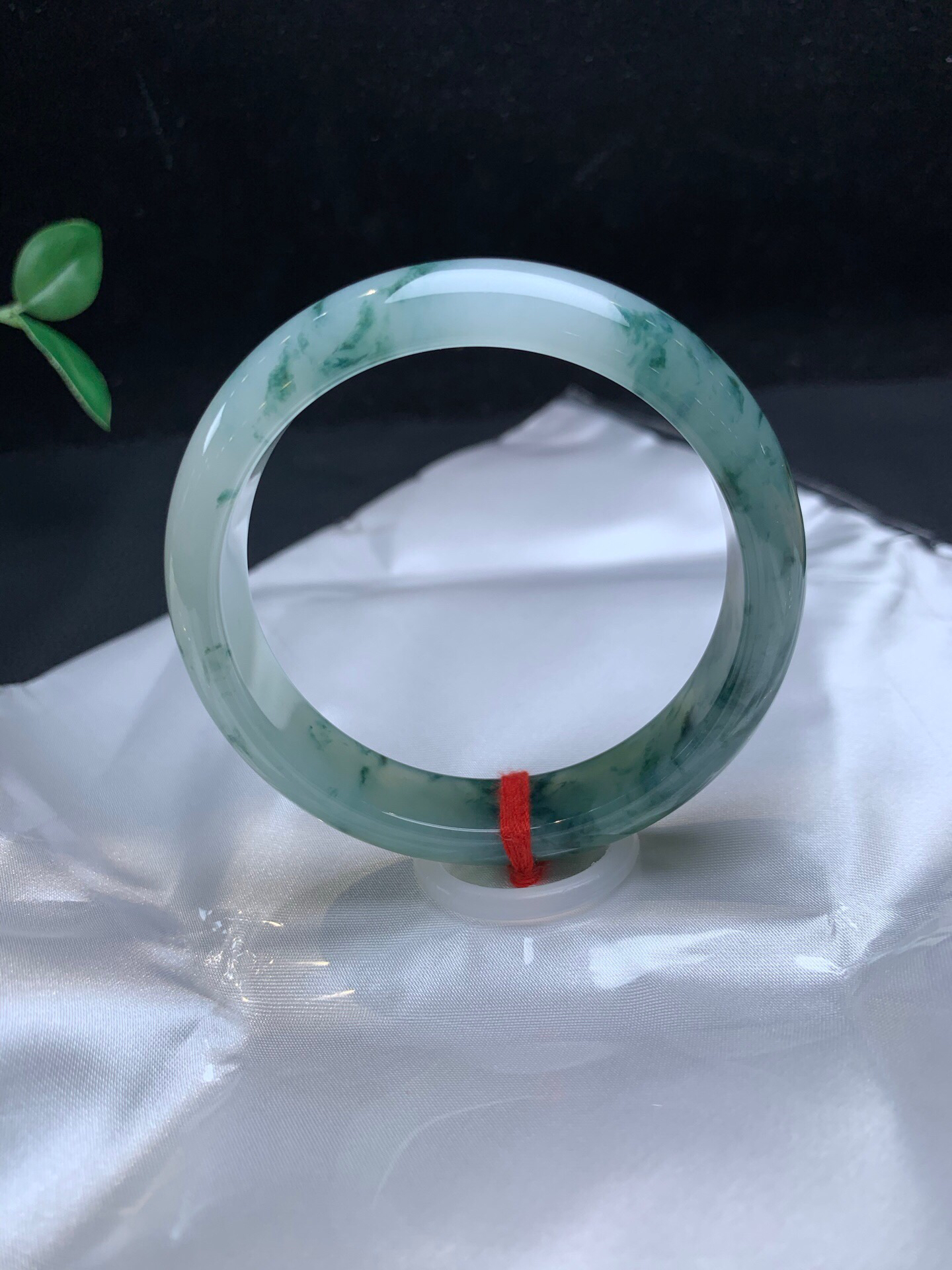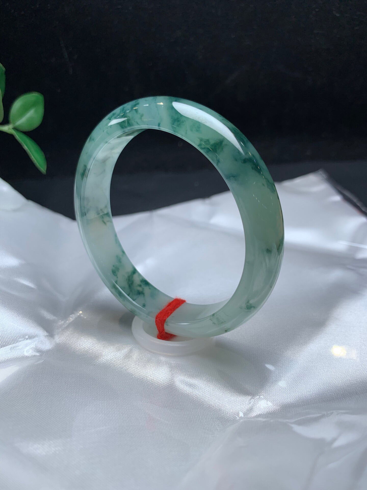 612818,57冰底飘花手镯。冰冰的,大半圈飘花、整体均匀干净