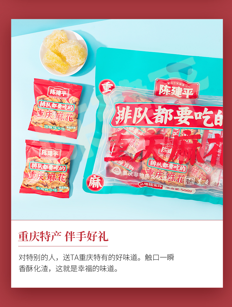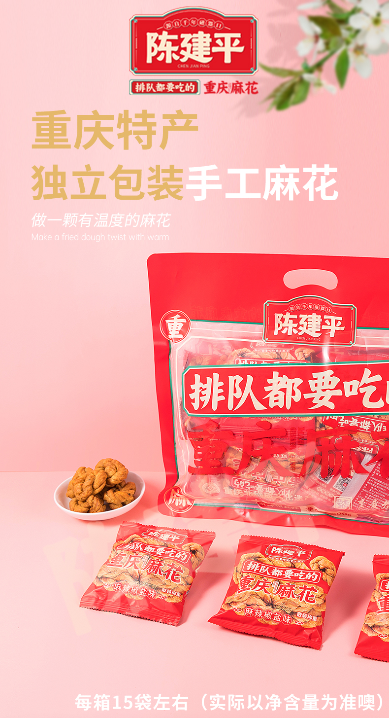 陈建平500g手工麻花手抓包休闲零食分享装重庆特产磁器口同款独立包装