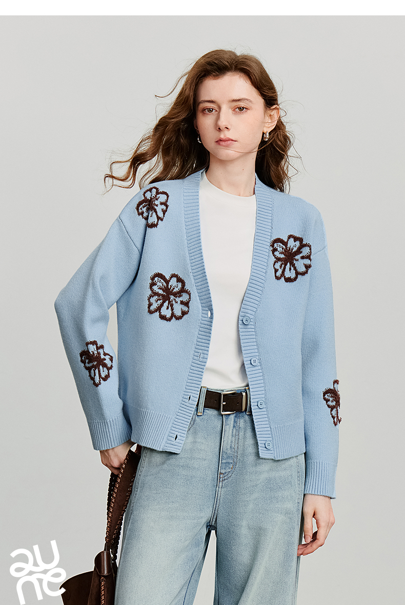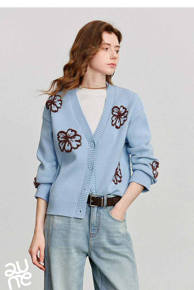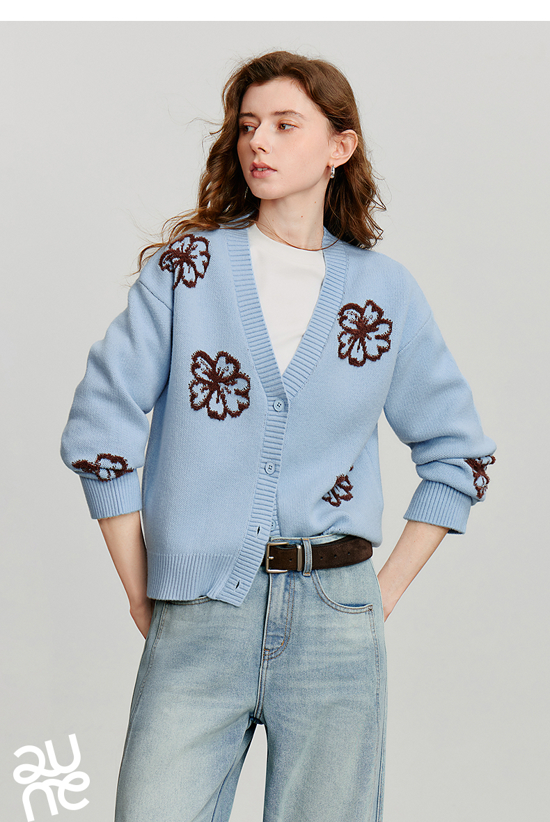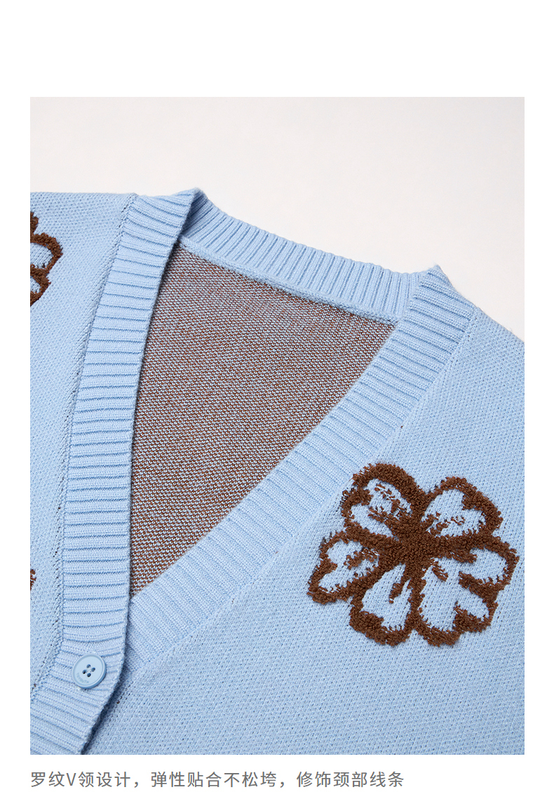初语针织衫女秋季新款V领开衫外套绿绒蒿复古植物系毛织上衣
