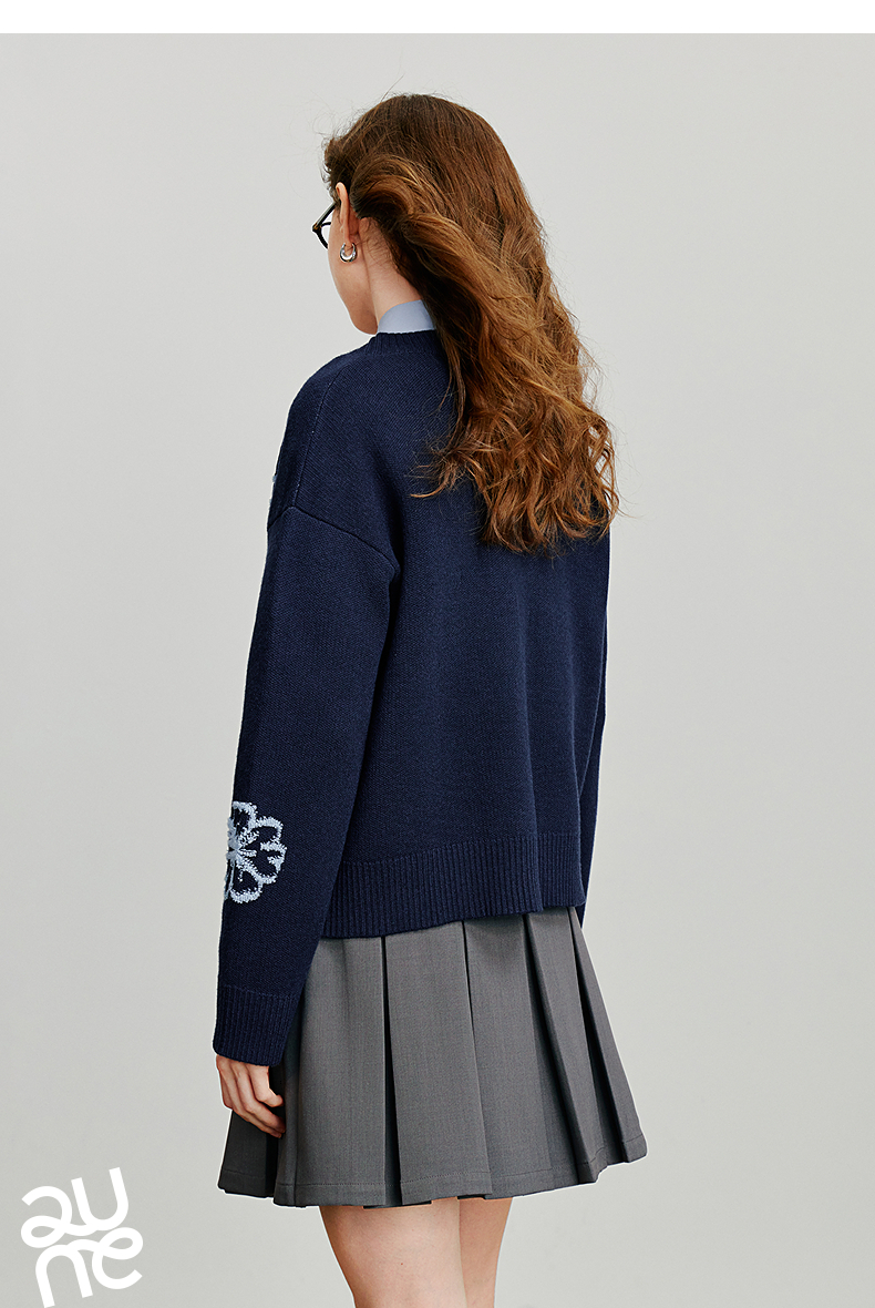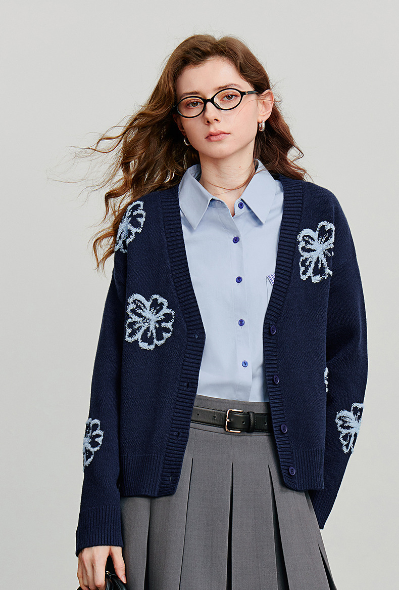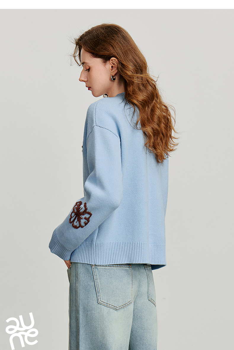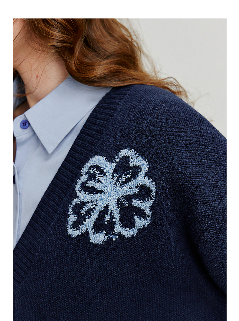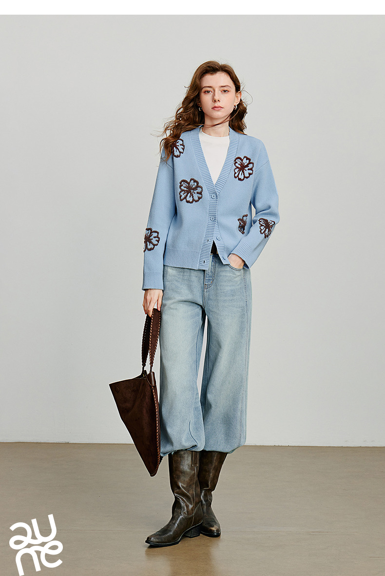 初语针织衫女秋季新款V领开衫外套绿绒蒿复古植物系毛织上衣