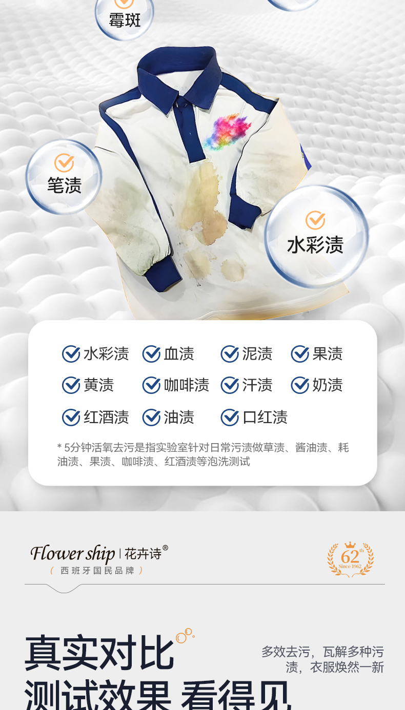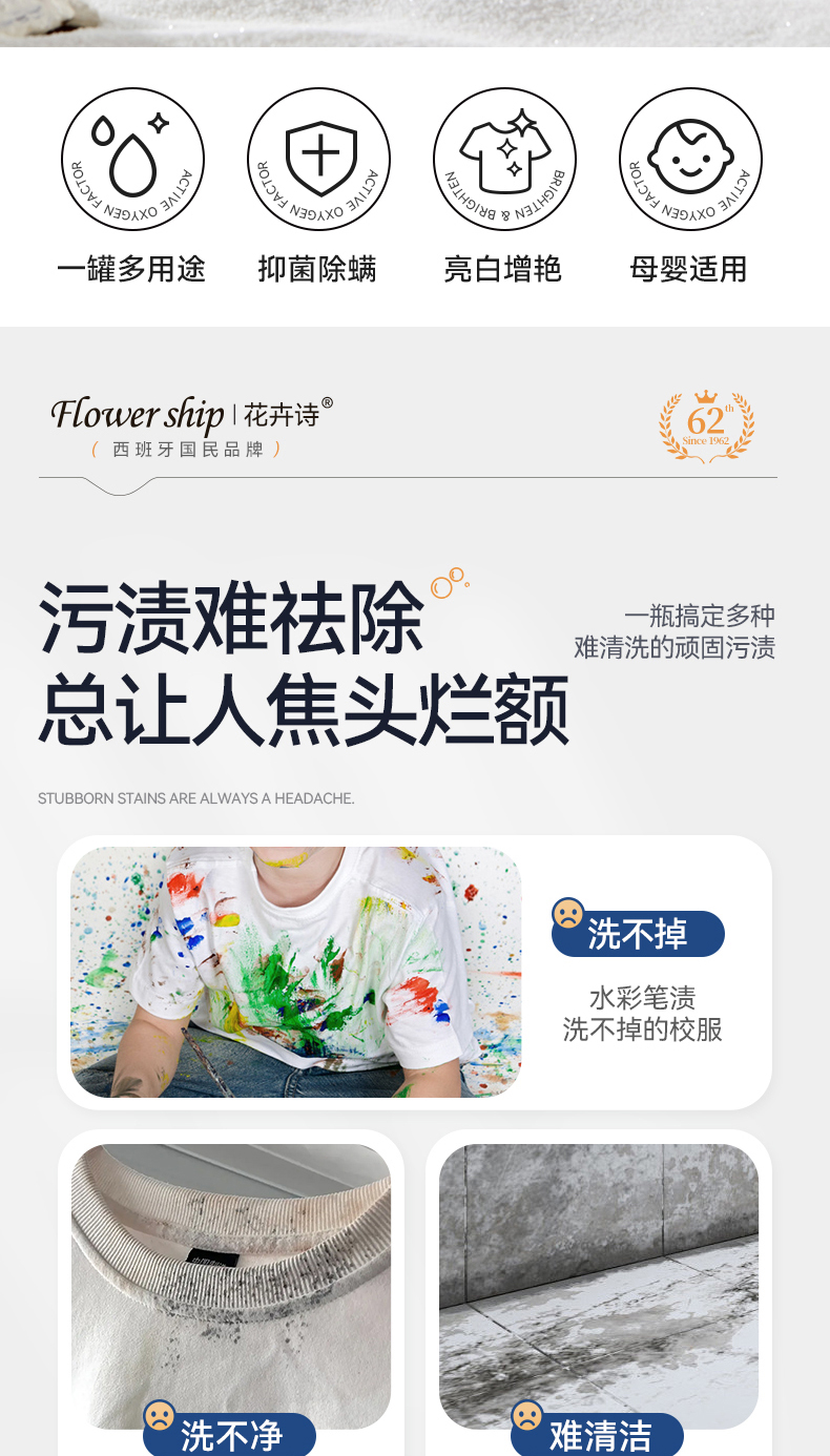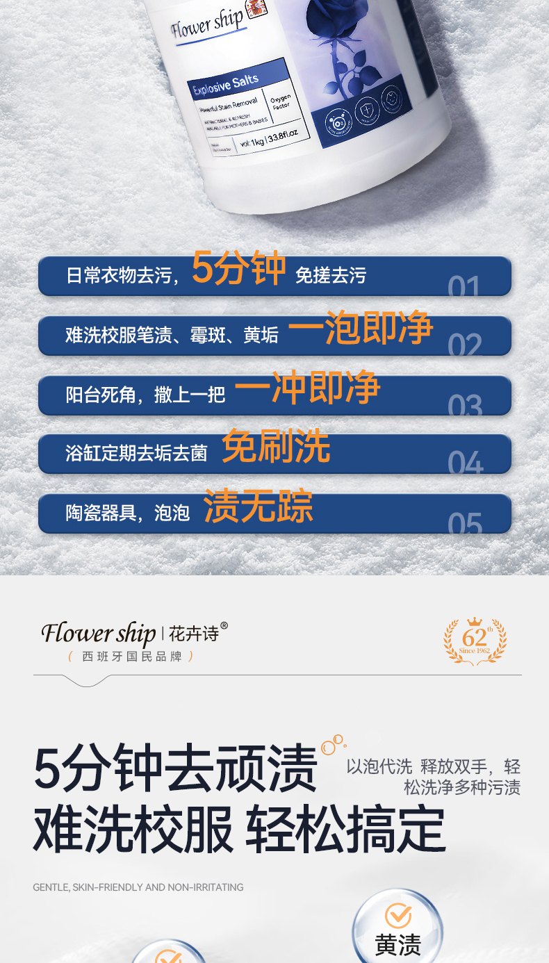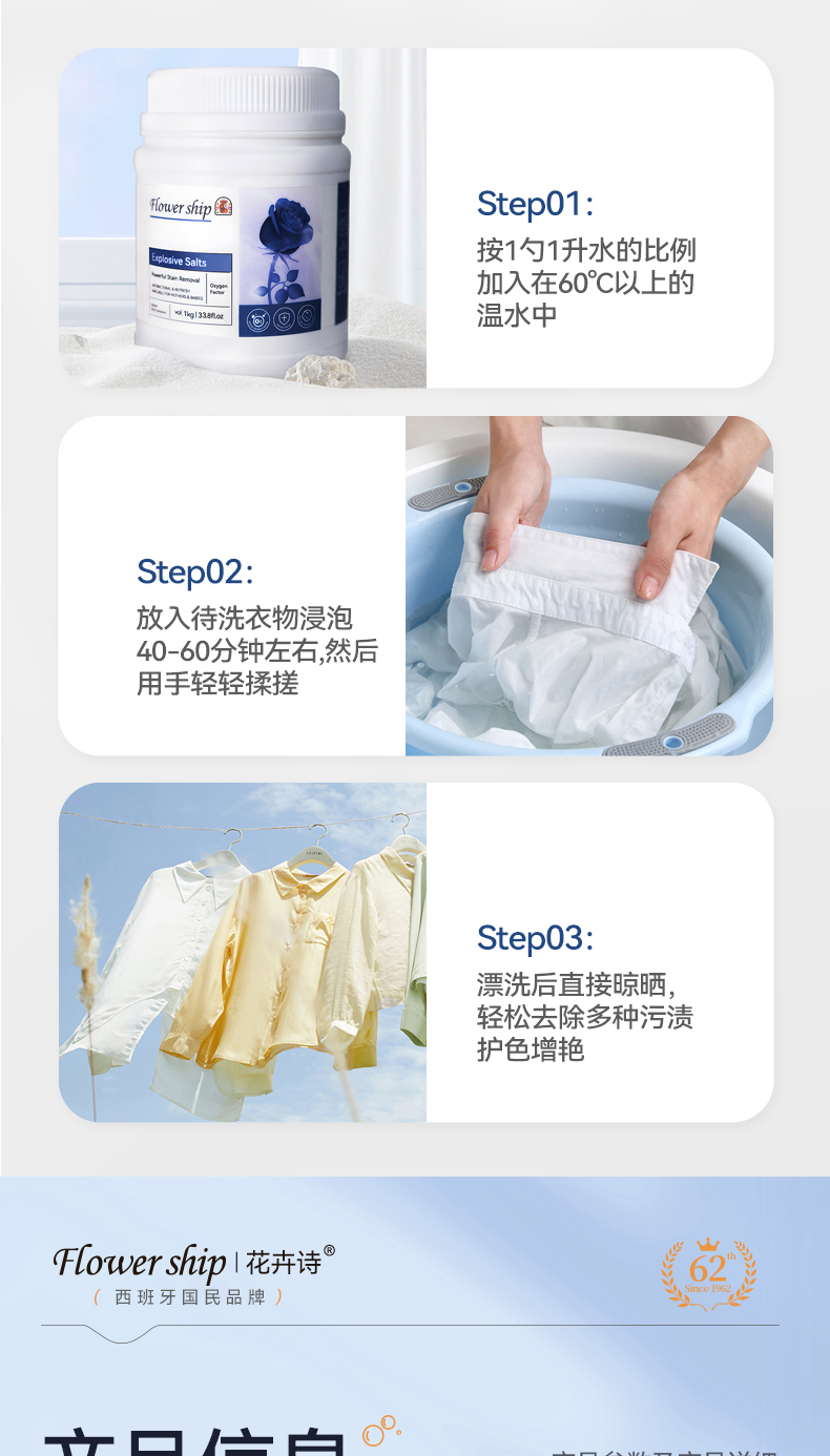 推荐理由:日常衣物去污,浸泡后轻松清洗干净。卫生死角,撒上一把,一冲就干净。浴缸马桶等污垢免刷洗,还有陶瓷器具,都适合泡泡清洁。一桶1公斤。