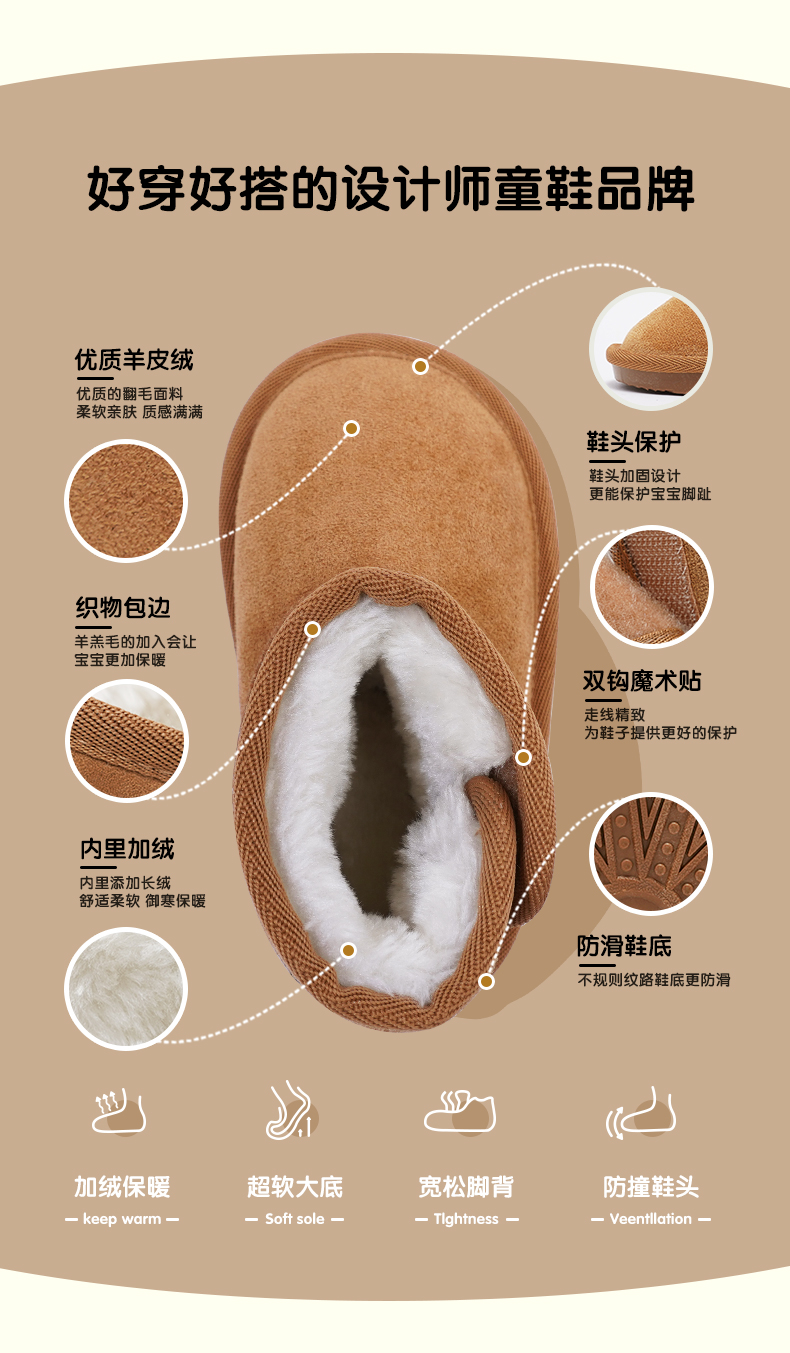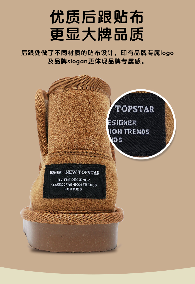 TOPSTAR官方儿童鞋子二棉鞋男童大棉冬鞋女童保暖雪地靴马丁靴秋1302