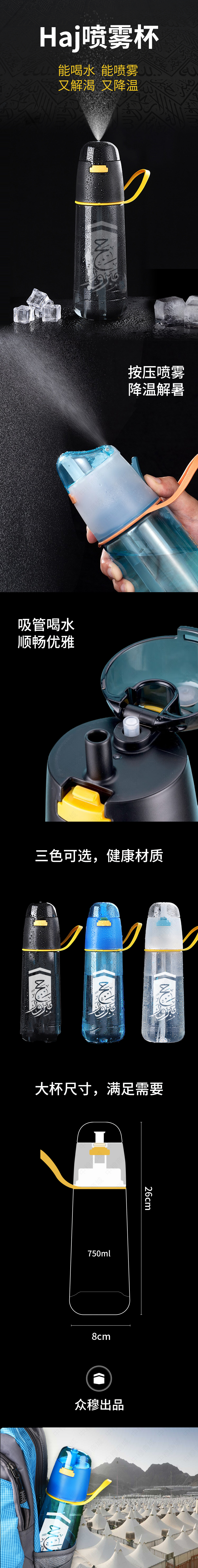 哈吉杯,喝水喷雾洗小净,750ml,食品级PC材质,