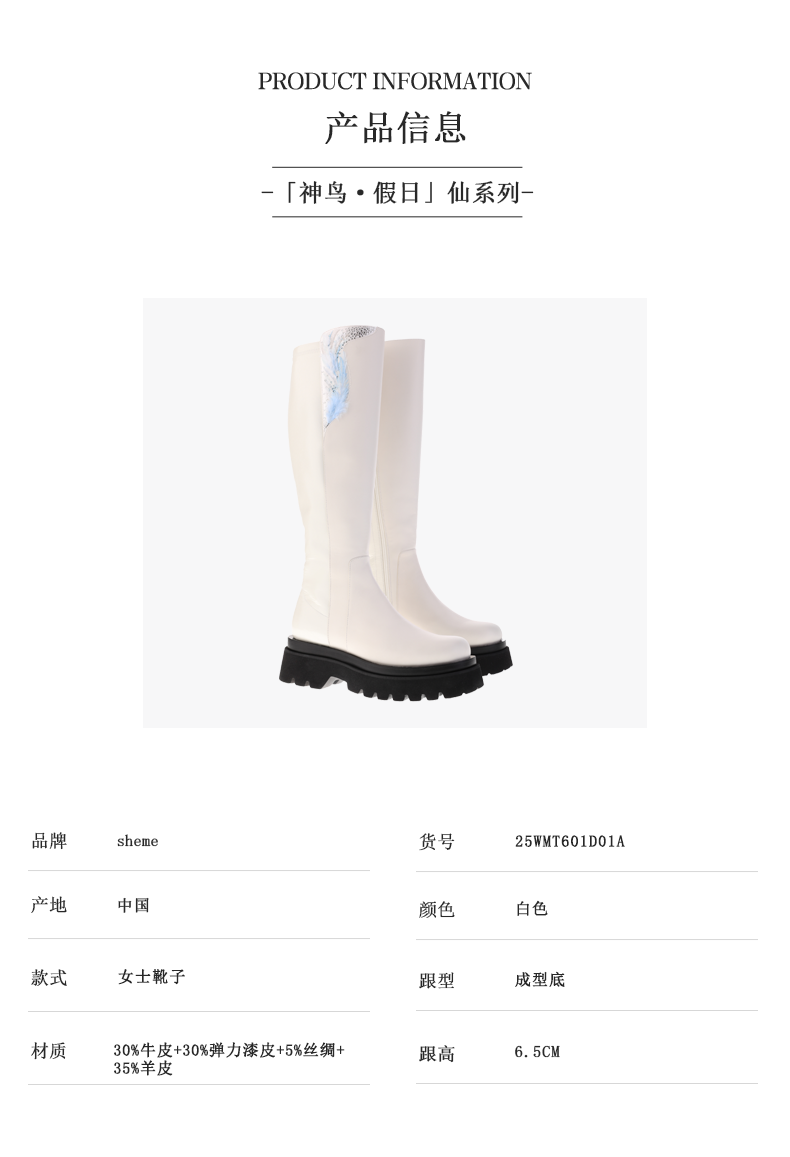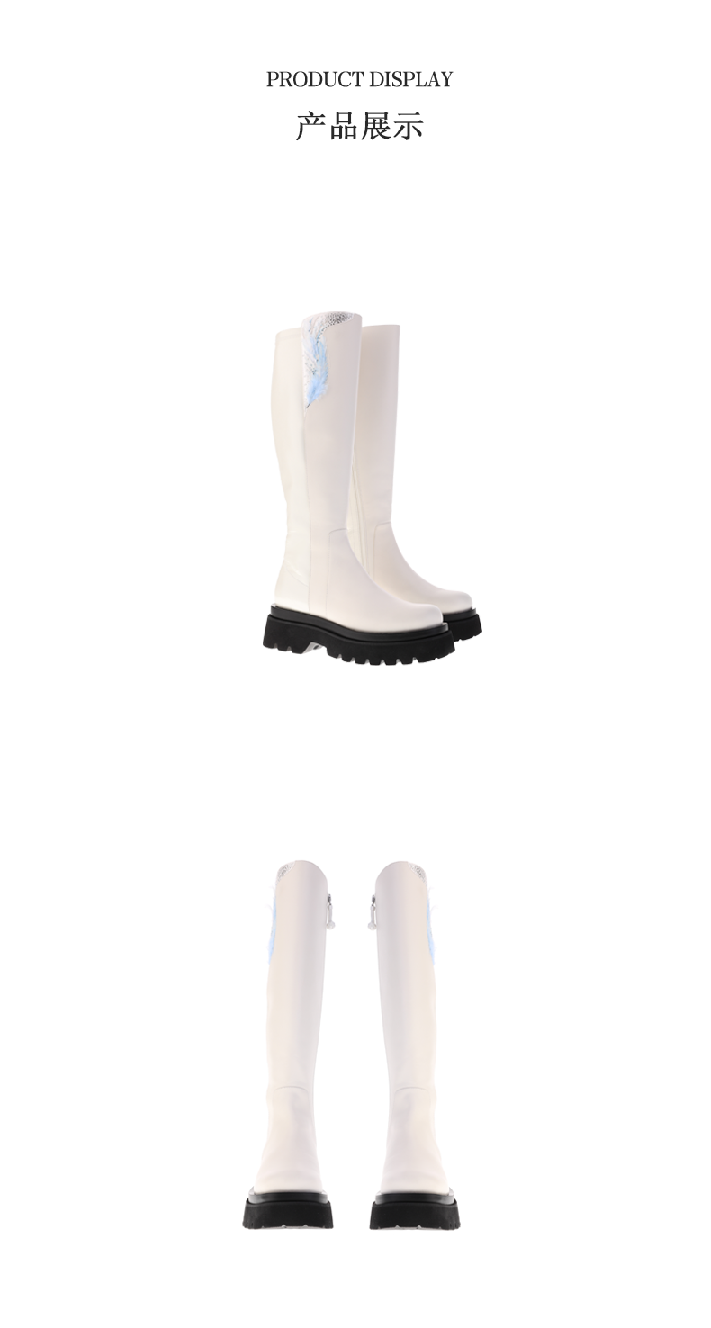 sheme景颇族原创文化女式厚底长筒靴刺绣羽毛修腿型可定制