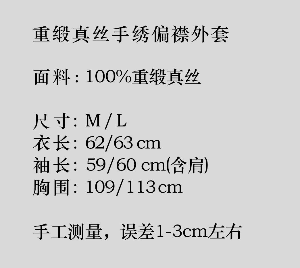 大师系列| 重缎真丝手绣偏襟外套-淡黄