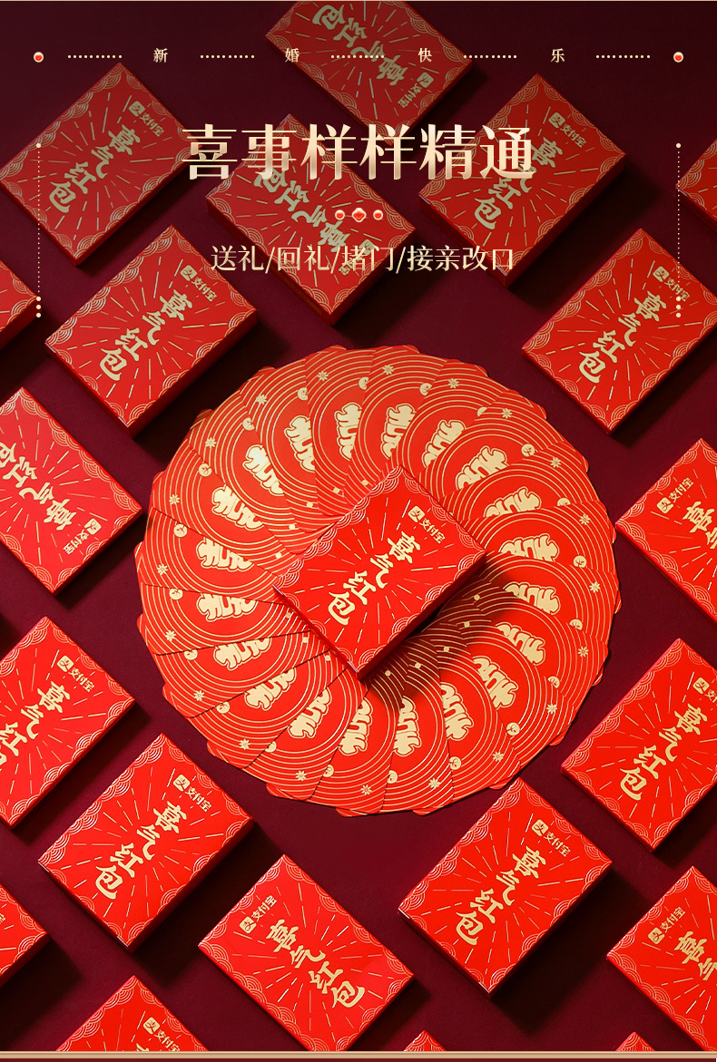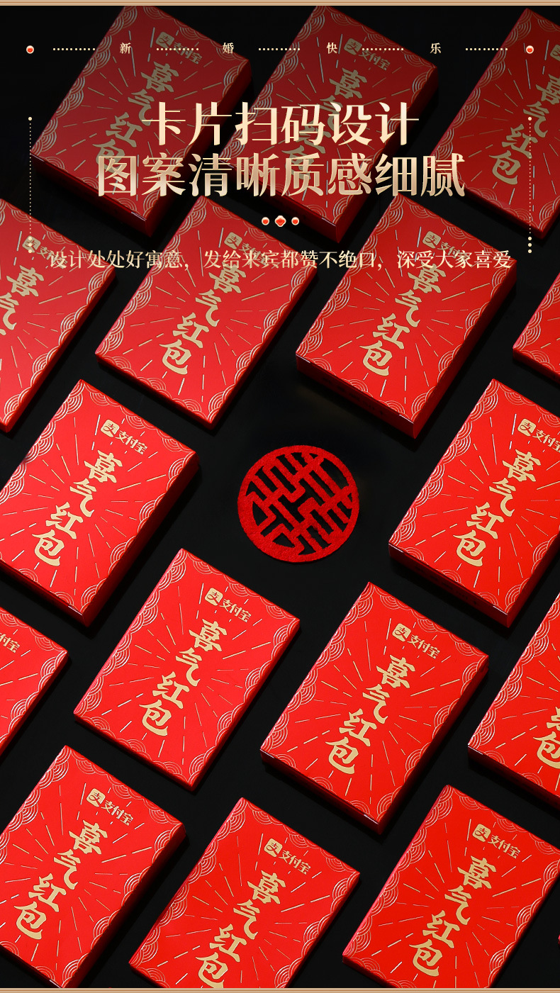 支付宝无现金结婚红包婚礼利是封接亲改口费无现金婚庆堵门小红包结婚红包支付宝扫码无现金喜气创意婚礼二维码接亲堵门迷你利是封