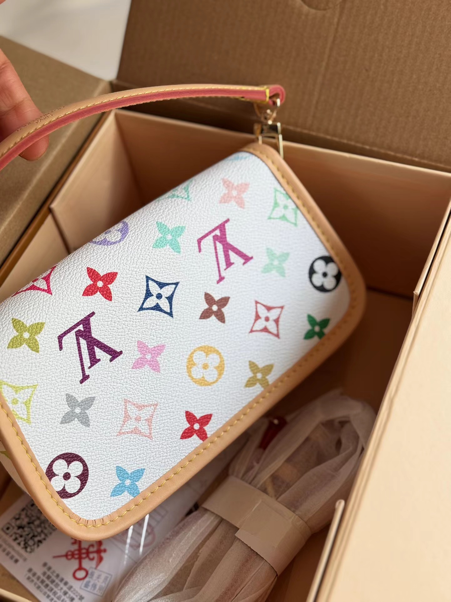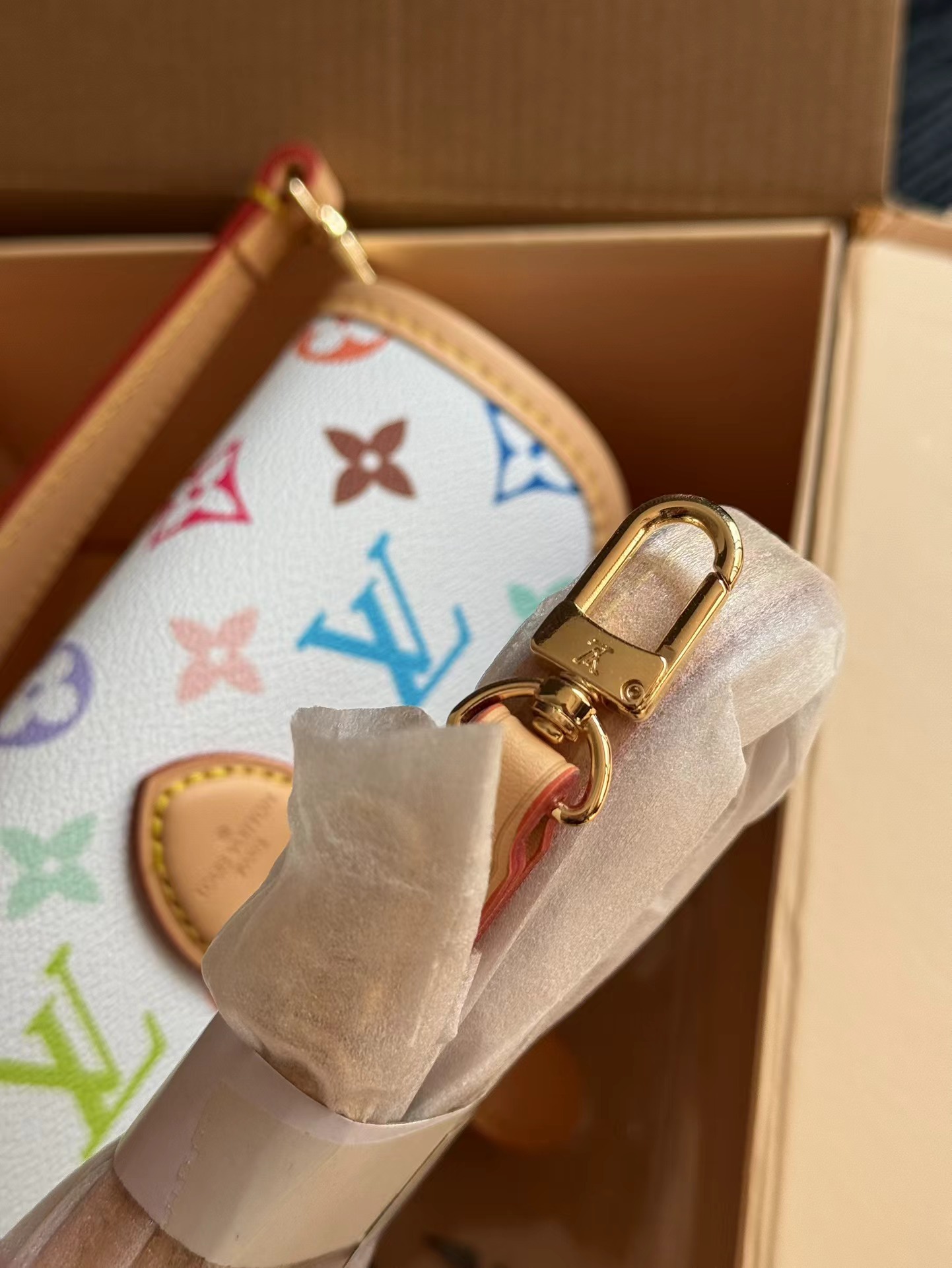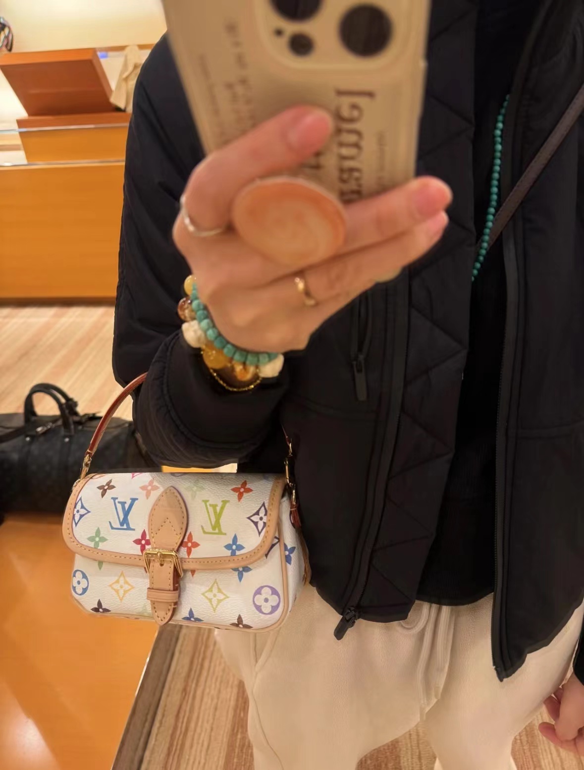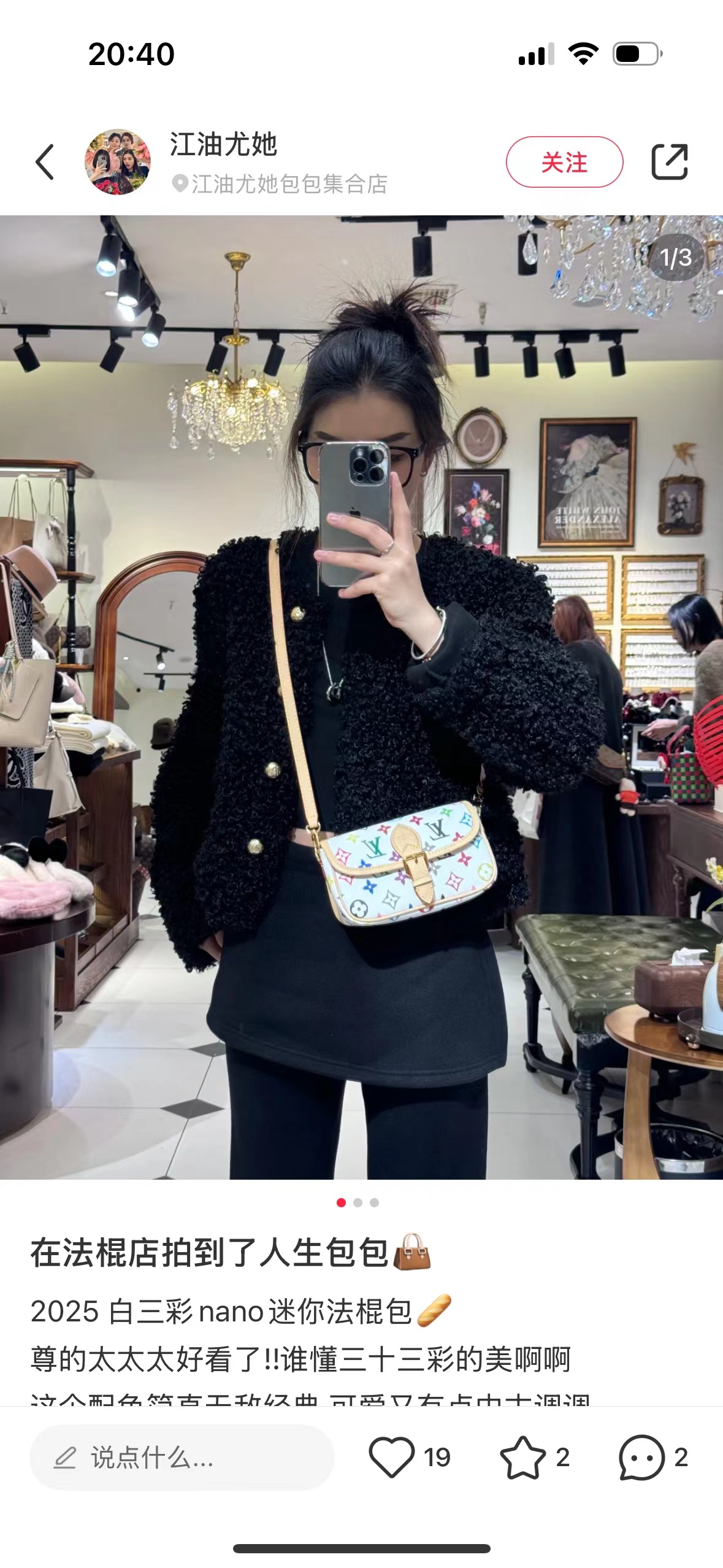 新款法棍小号出货啦 本款Nano Diane为Monogram帆布包身融入皮革包角和传统搭扣等复古元素,复现圆润翻盖和腰带式开合等原型细节。充裕空间可收纳手机和日常所需,可拆卸手柄和可拆卸并调节的肩带实现灵活背携,昼夜场合皆宜。