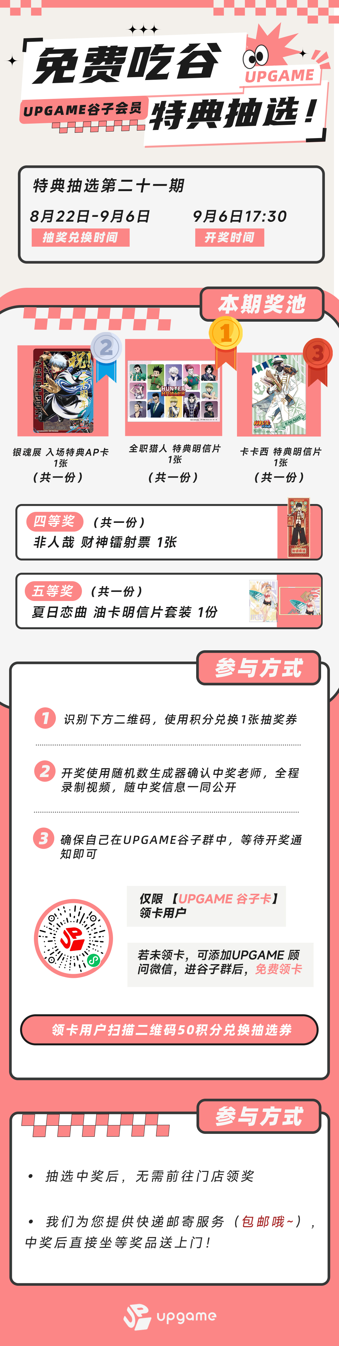 第21期UPGAME谷子会员特典抽选:本期最高奖项 -全职猎人 特典明信片 1张