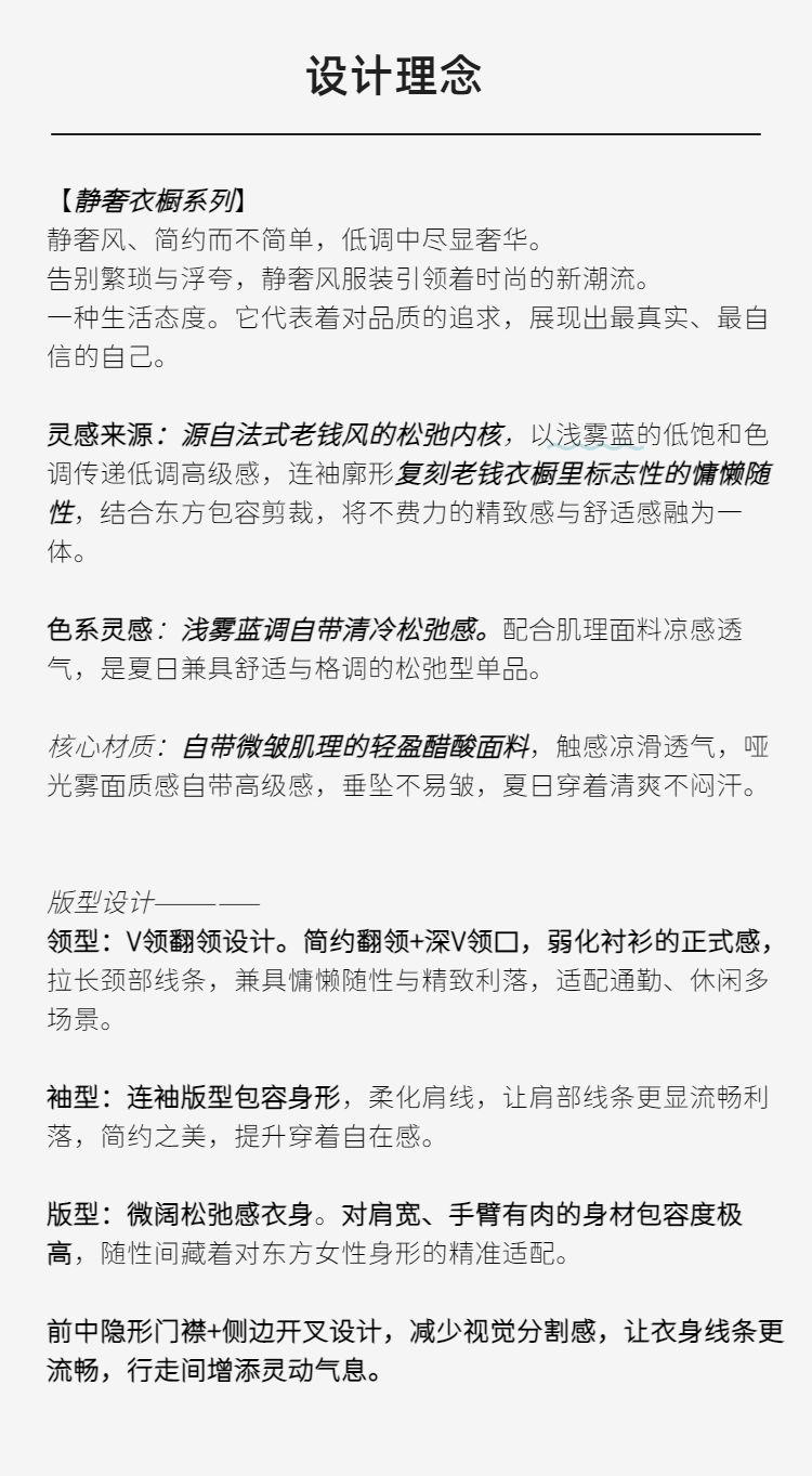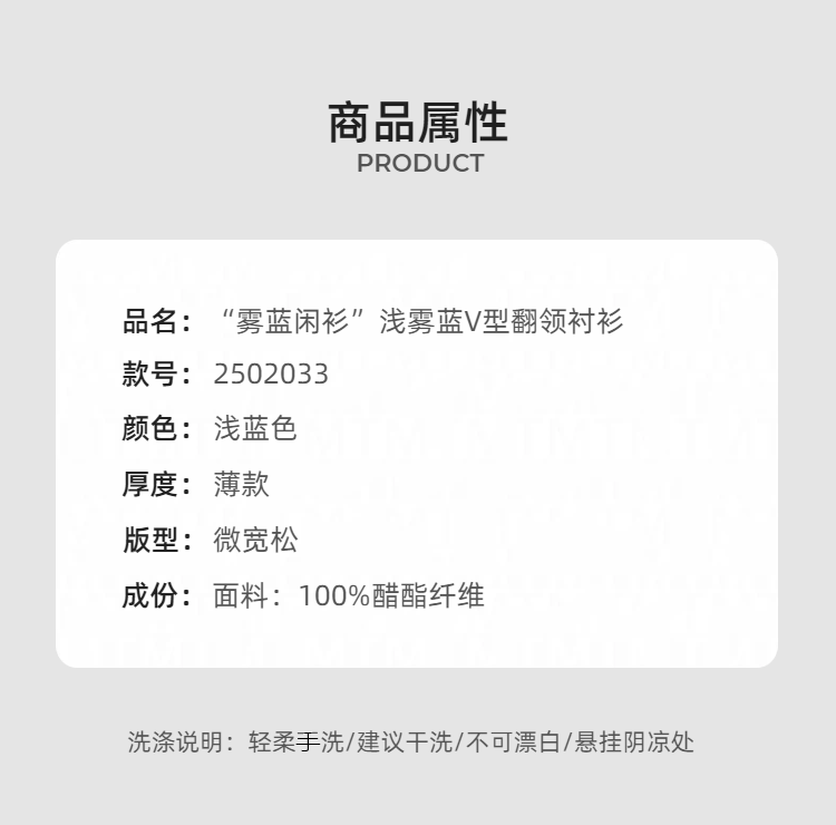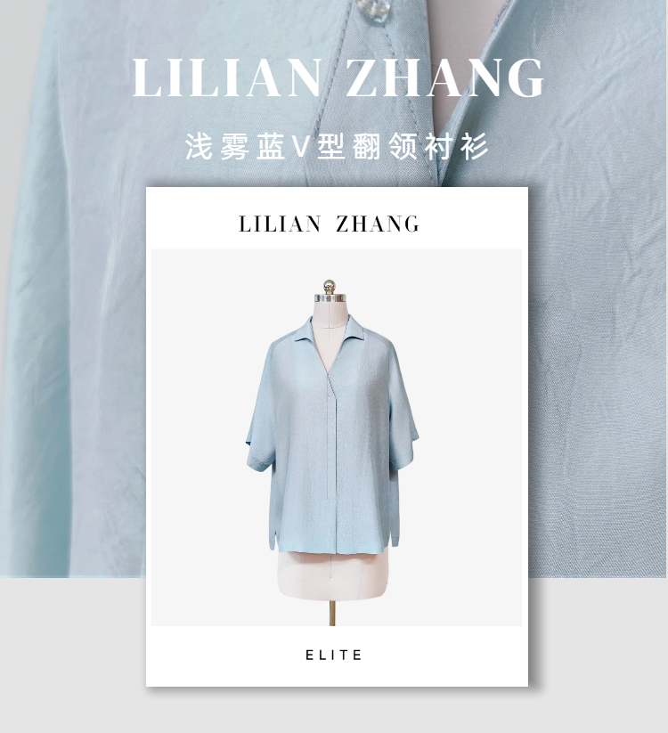 “定制”静奢风 「松弛老钱」“雾蓝闲衫”浅雾蓝V型翻领衬衫 2502033