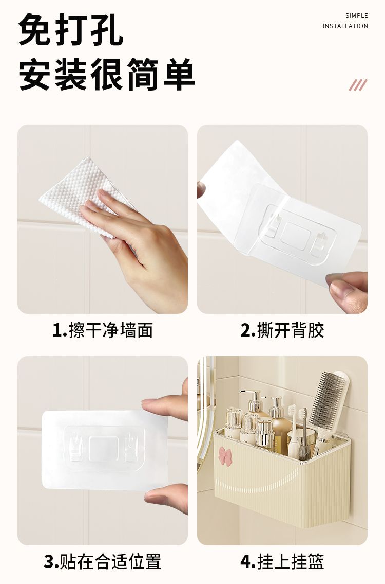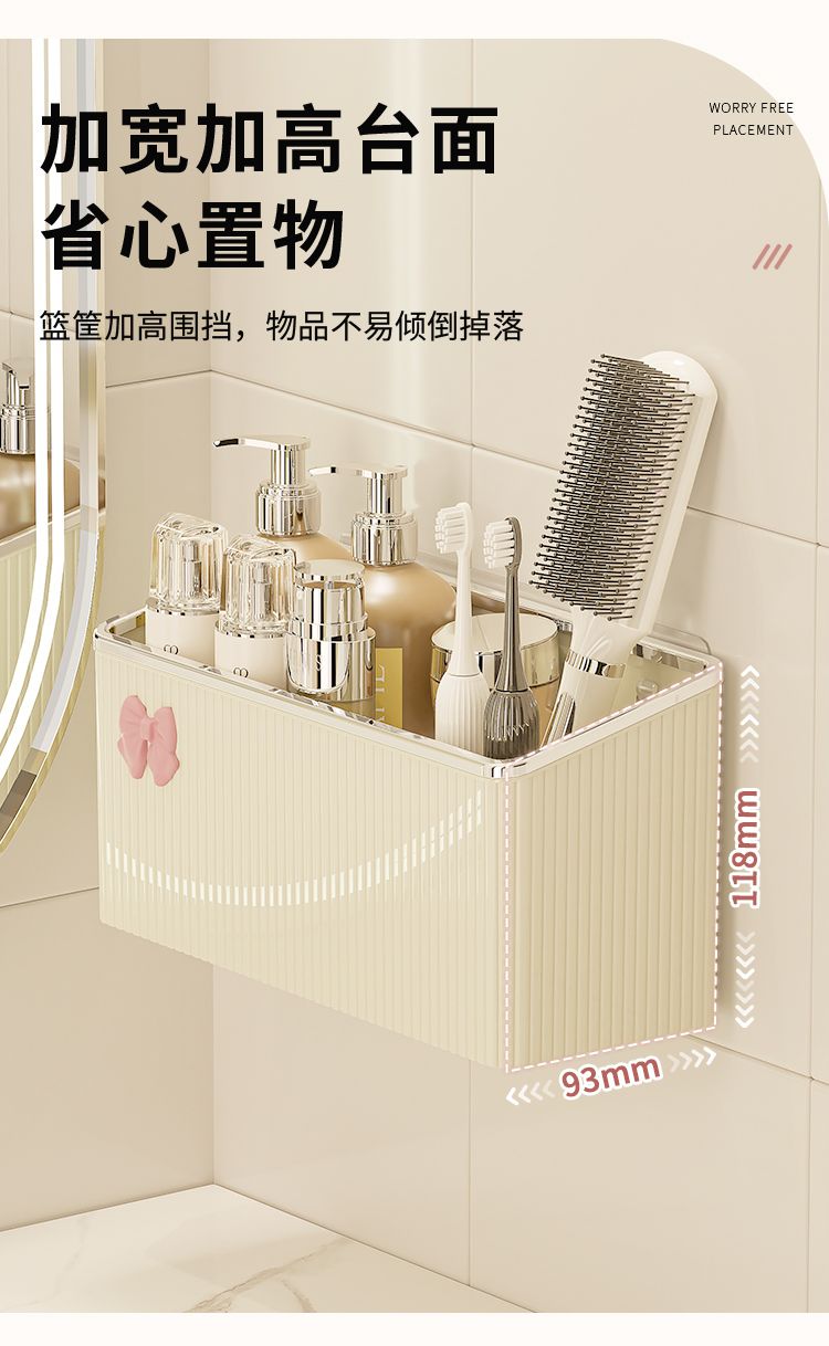 卫生间洗手台置物架浴室厕所免打孔壁挂牙刷牙膏梳子剃须刀收纳筒