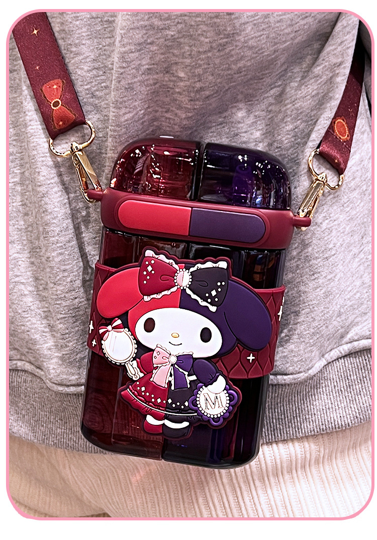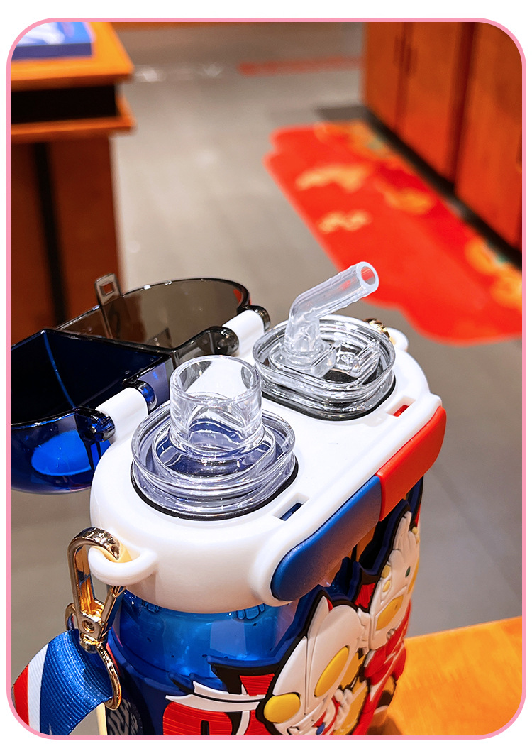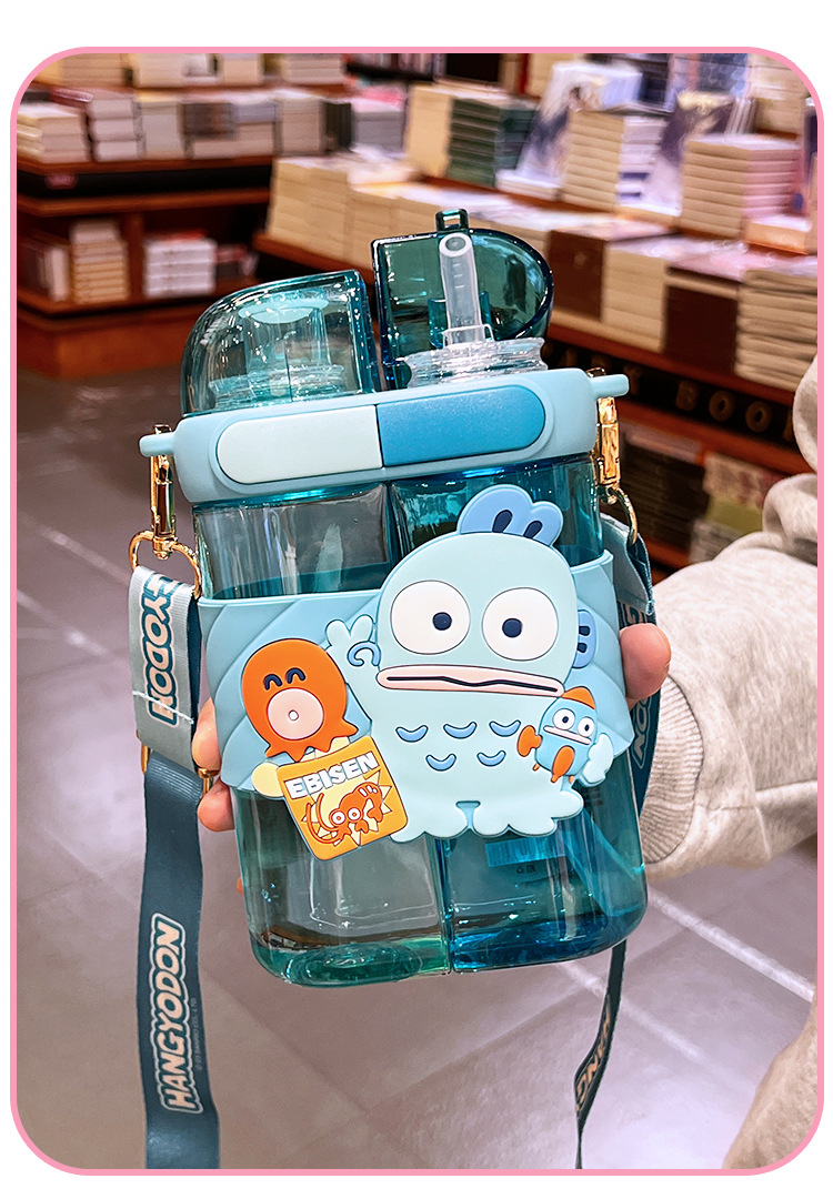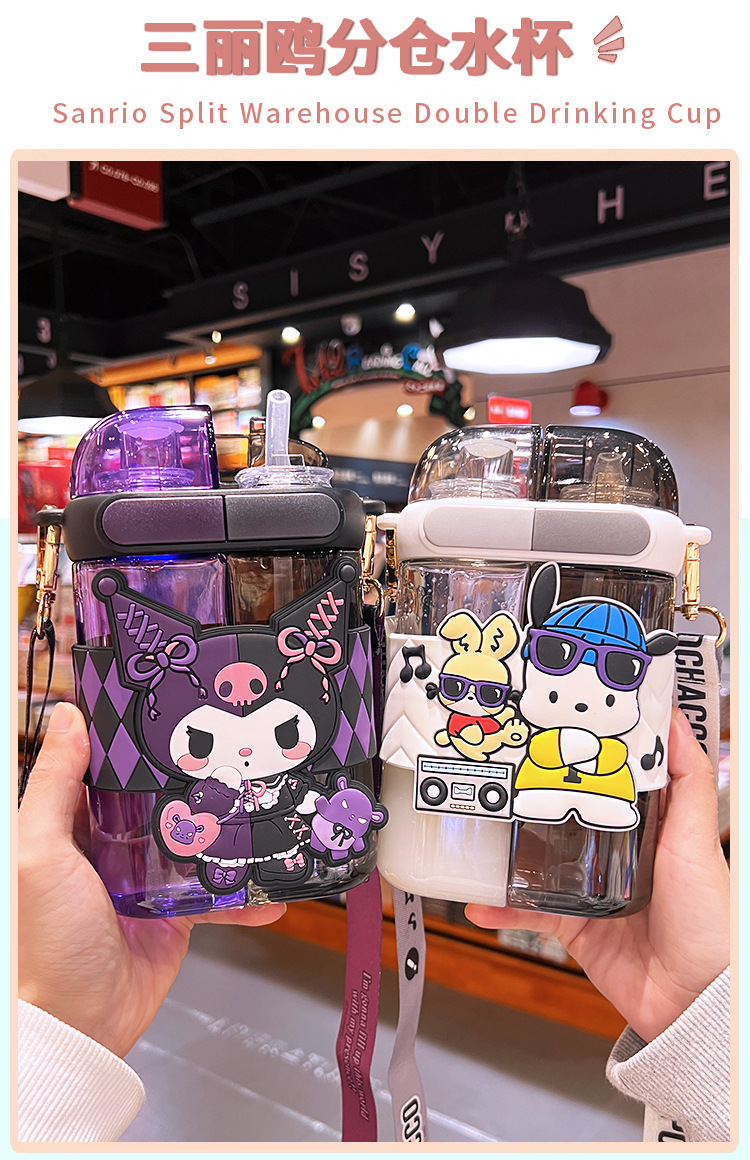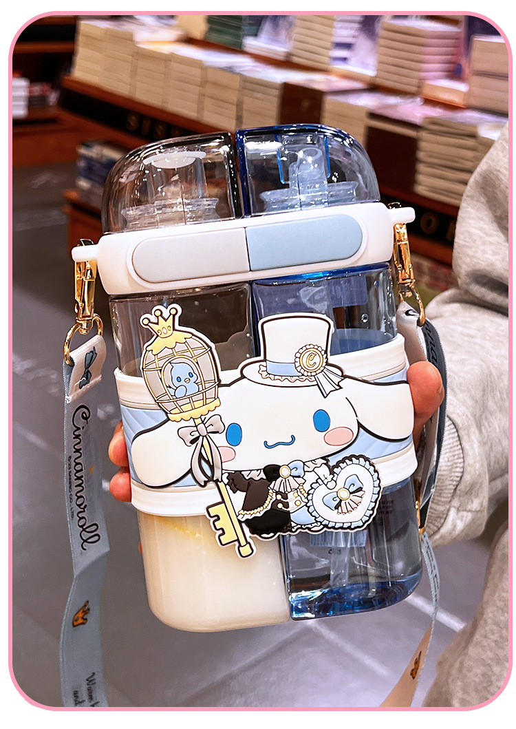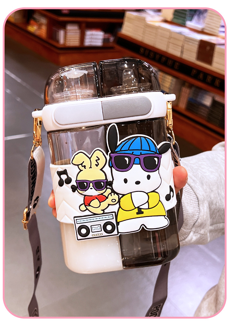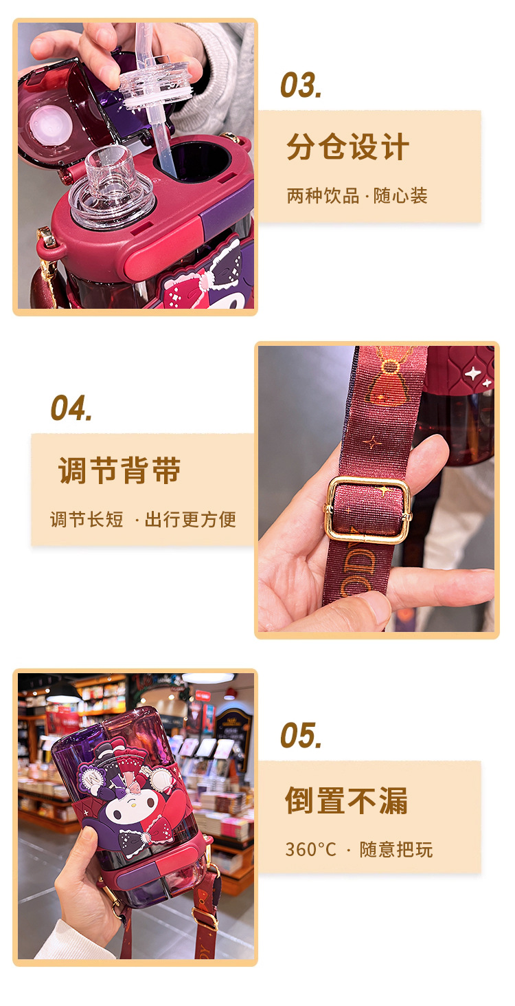 艾可思方形吸管水杯高颜值大容量分仓双饮塑料水杯小学生斜挎杯子