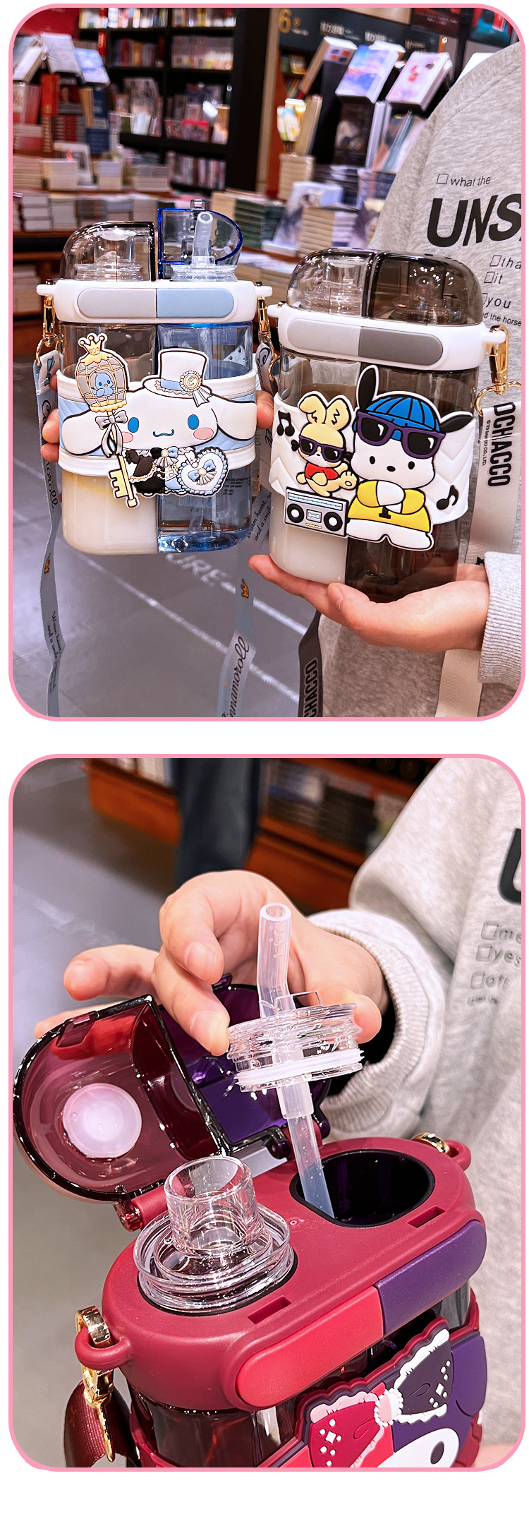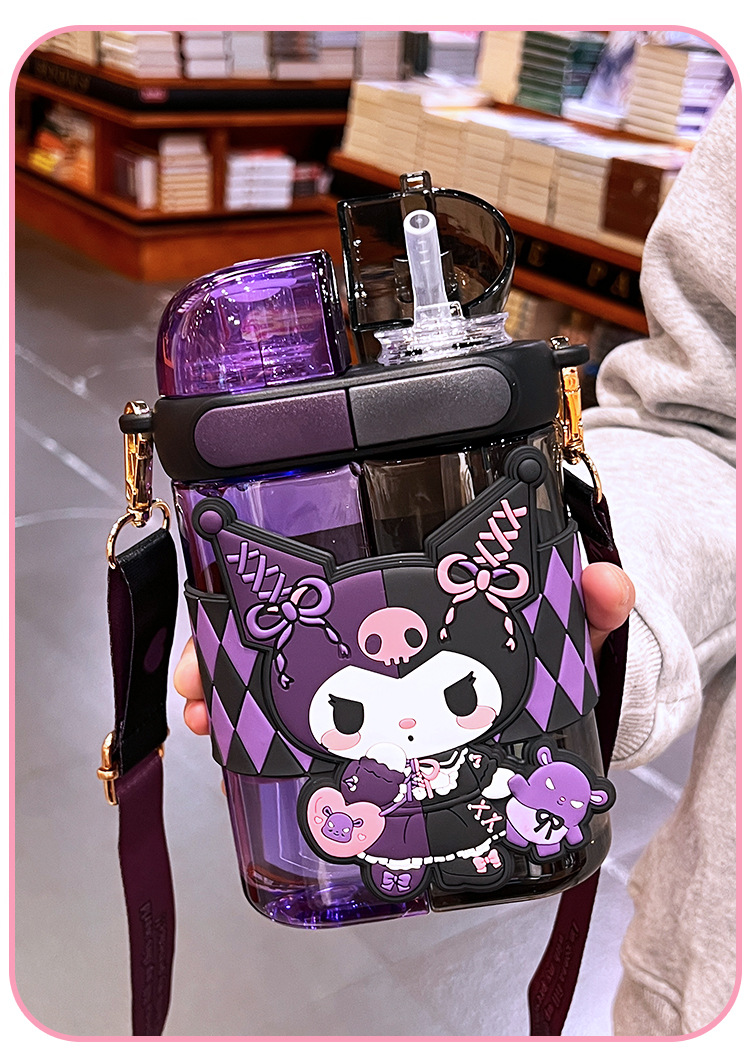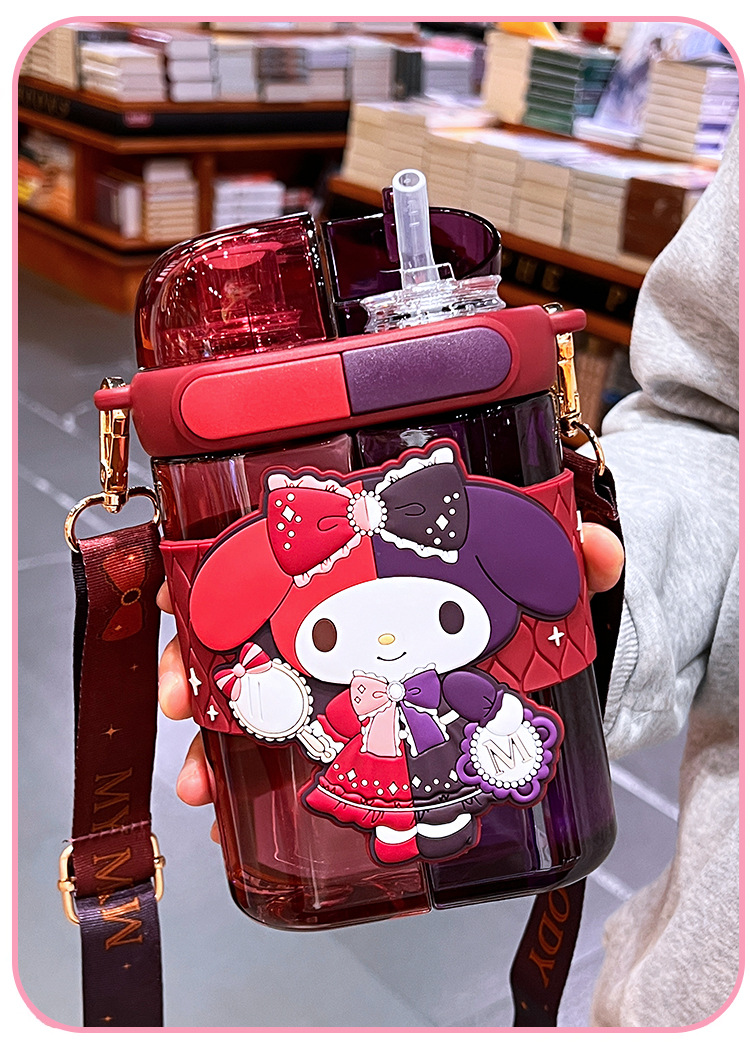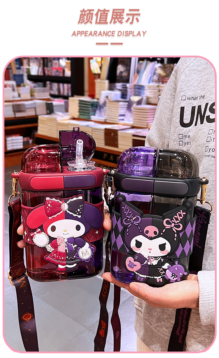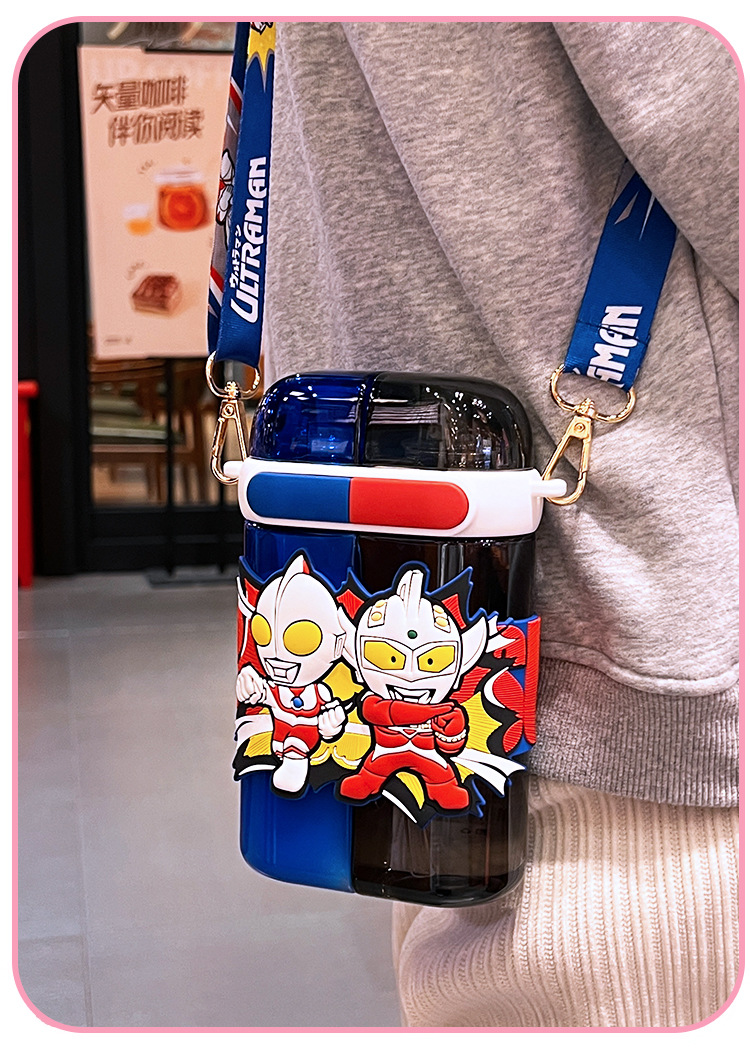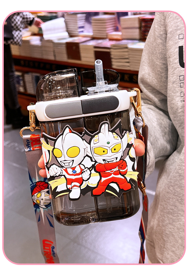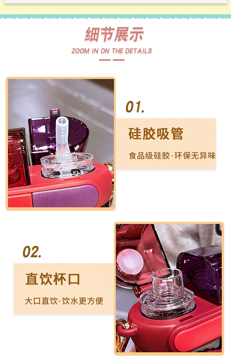 艾可思方形吸管水杯高颜值大容量分仓双饮塑料水杯小学生斜挎杯子